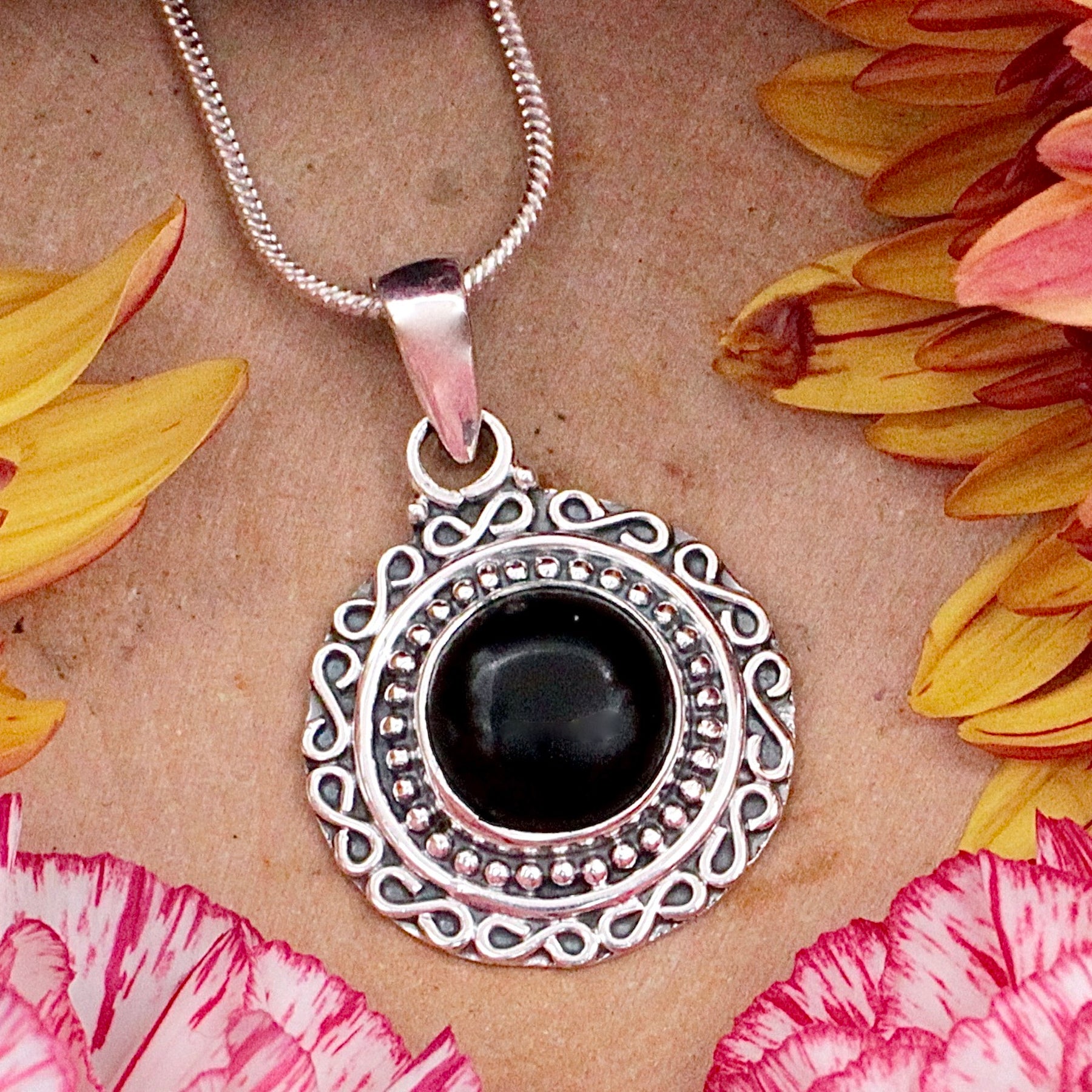 Black Onyx Round Pendant