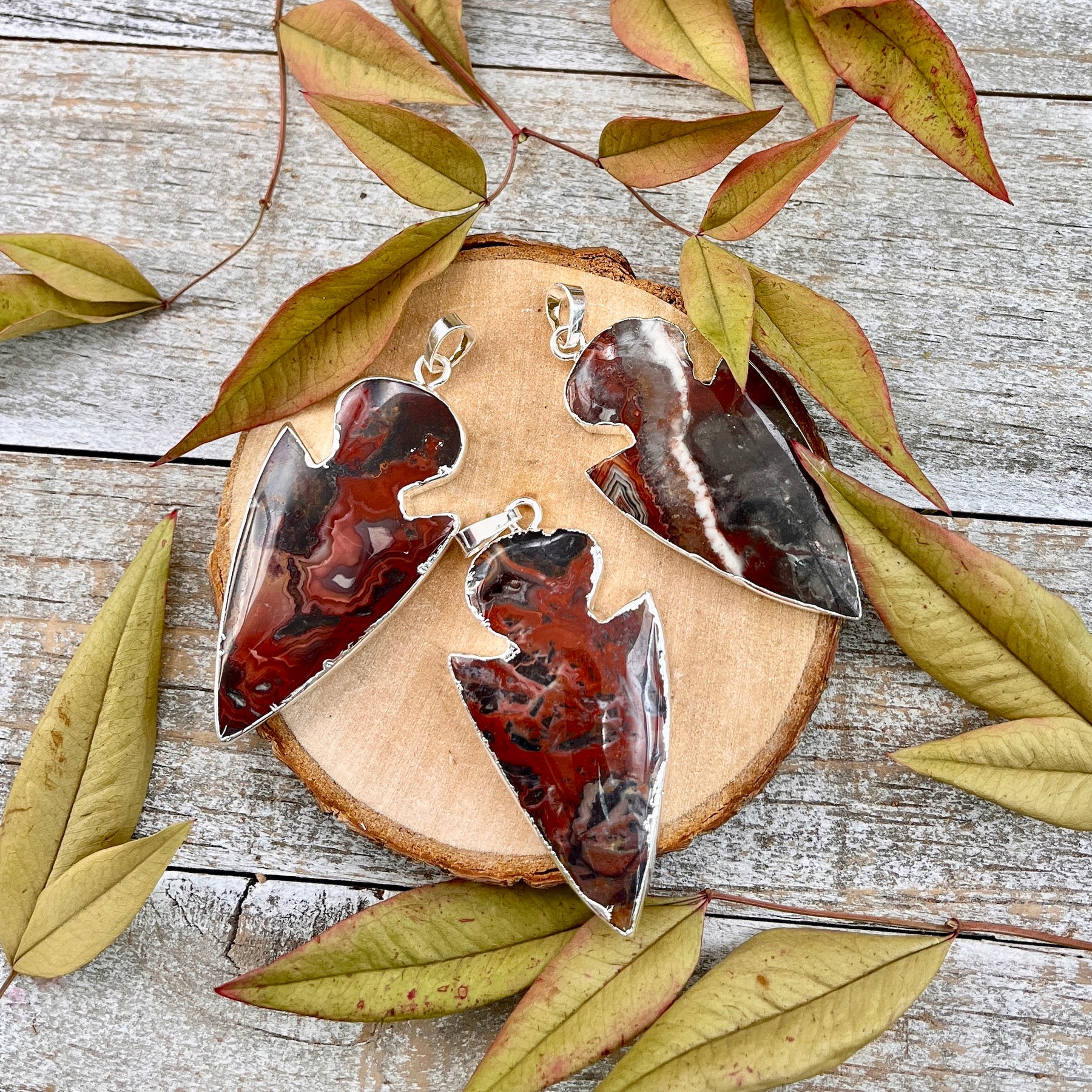 Cleanse and stabilize your aura with a Red Jasper Arrowhead Pendant. Featuring a graphic mix of red, black, and white, this stone is beautiful both visually and energetically.