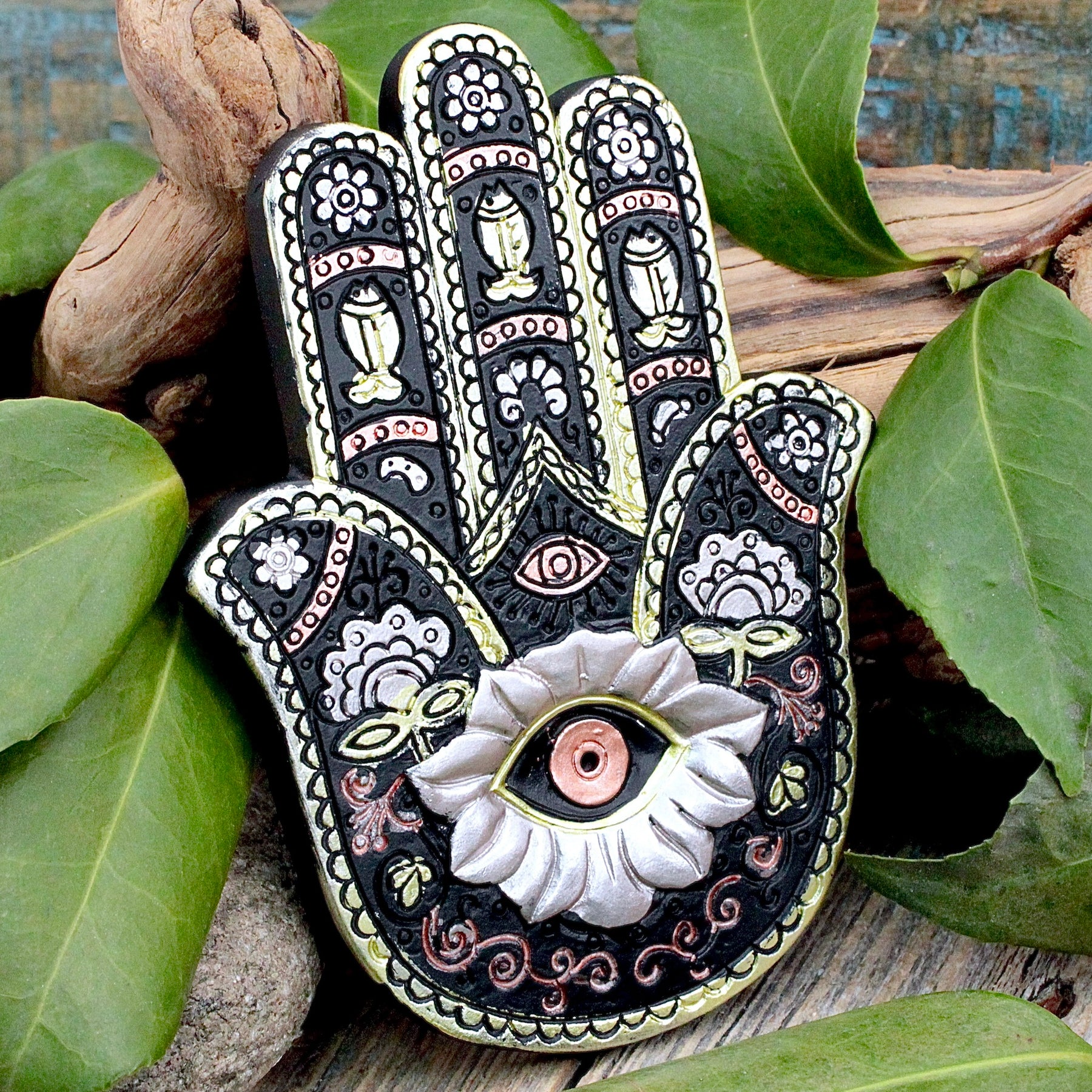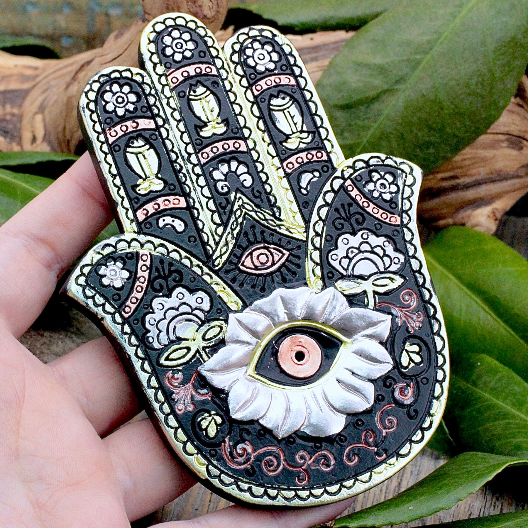 Elevate your space with this lovely Hamsa Hand Incense Burner. Crafted to bring tranquility, it adds a touch of serenity to any room.