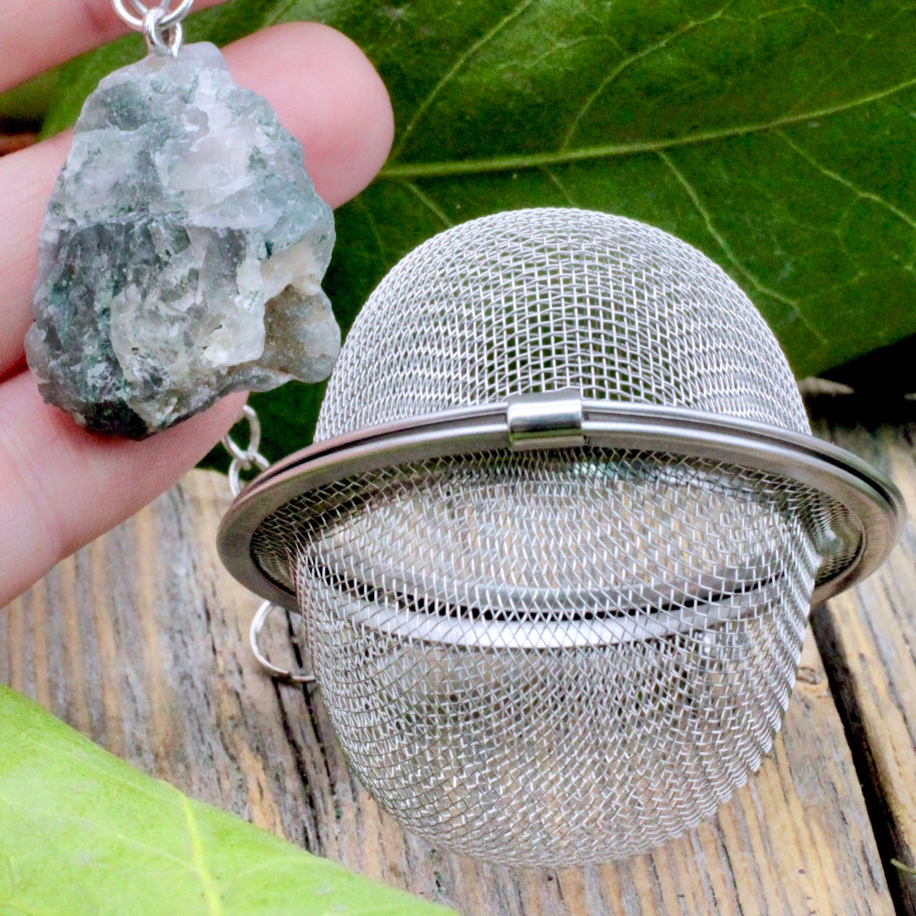Enhance your tea experience with this Moss Agate tea steeper. Infuse health, balance, and connection to nature into every cup of tea. Elevate your sips with the energy of Moss Agate.