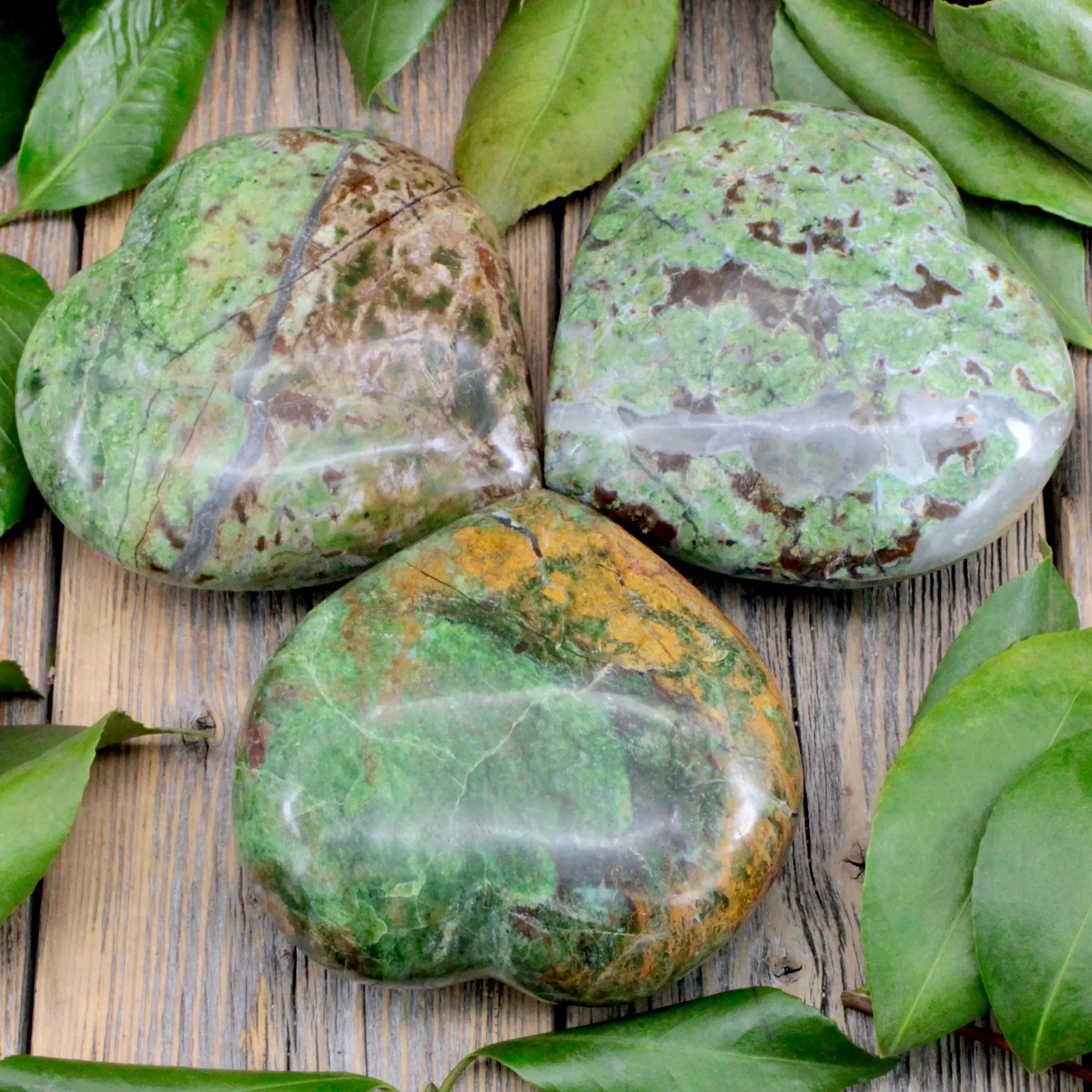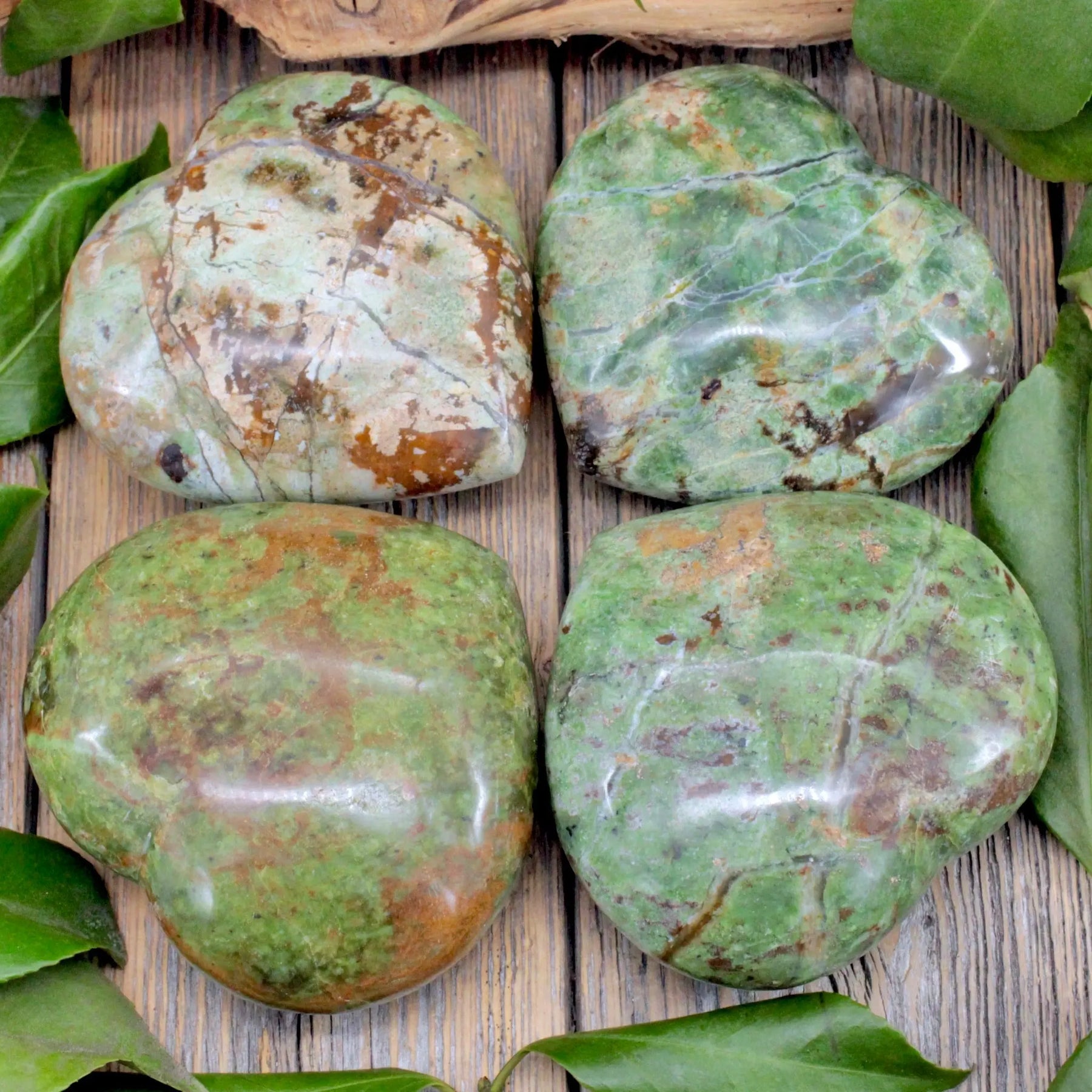Enhance your ability to adapt with this Chrysoprase Hart. The lovely greens and yellows of this stone bring to mind the calming setting of a forest. Let this heart touch your heart and bring you balance and peace when things are changing in your life.
