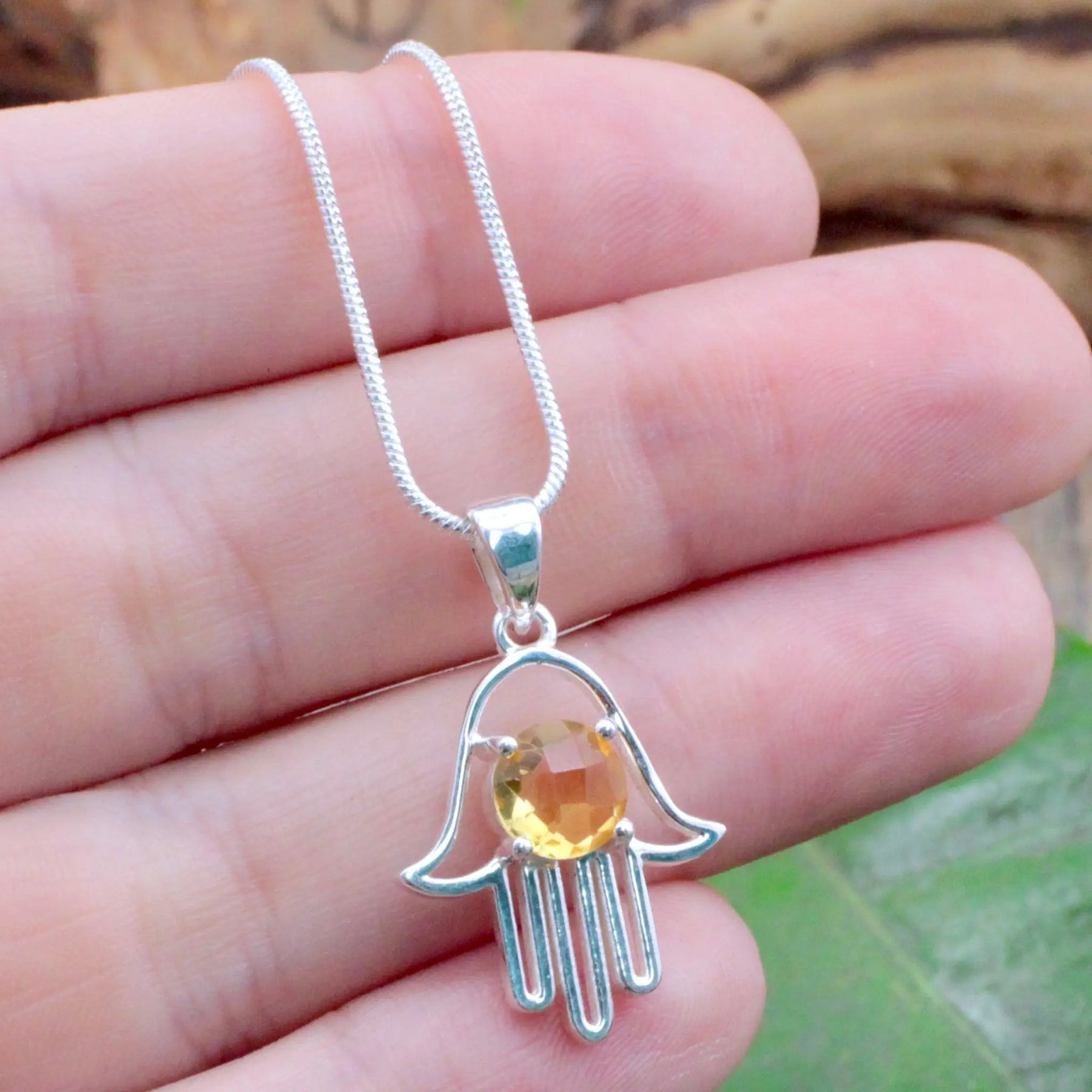 Disperse negativity with this Citrine hamsa pendant. Citrine is a gem of absolute optimism and invigorating vitality. This piece would serve as an energizing addition to any assortment of jewelry.