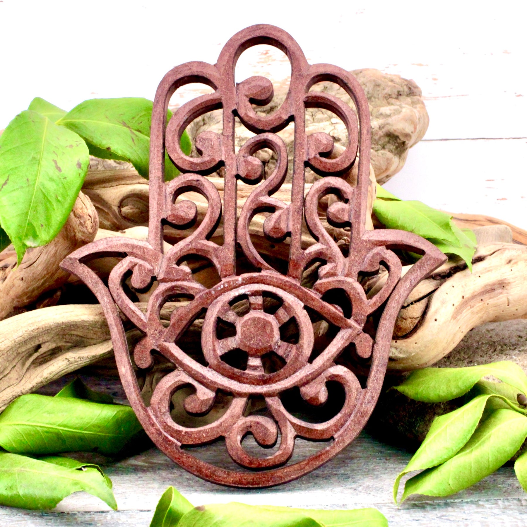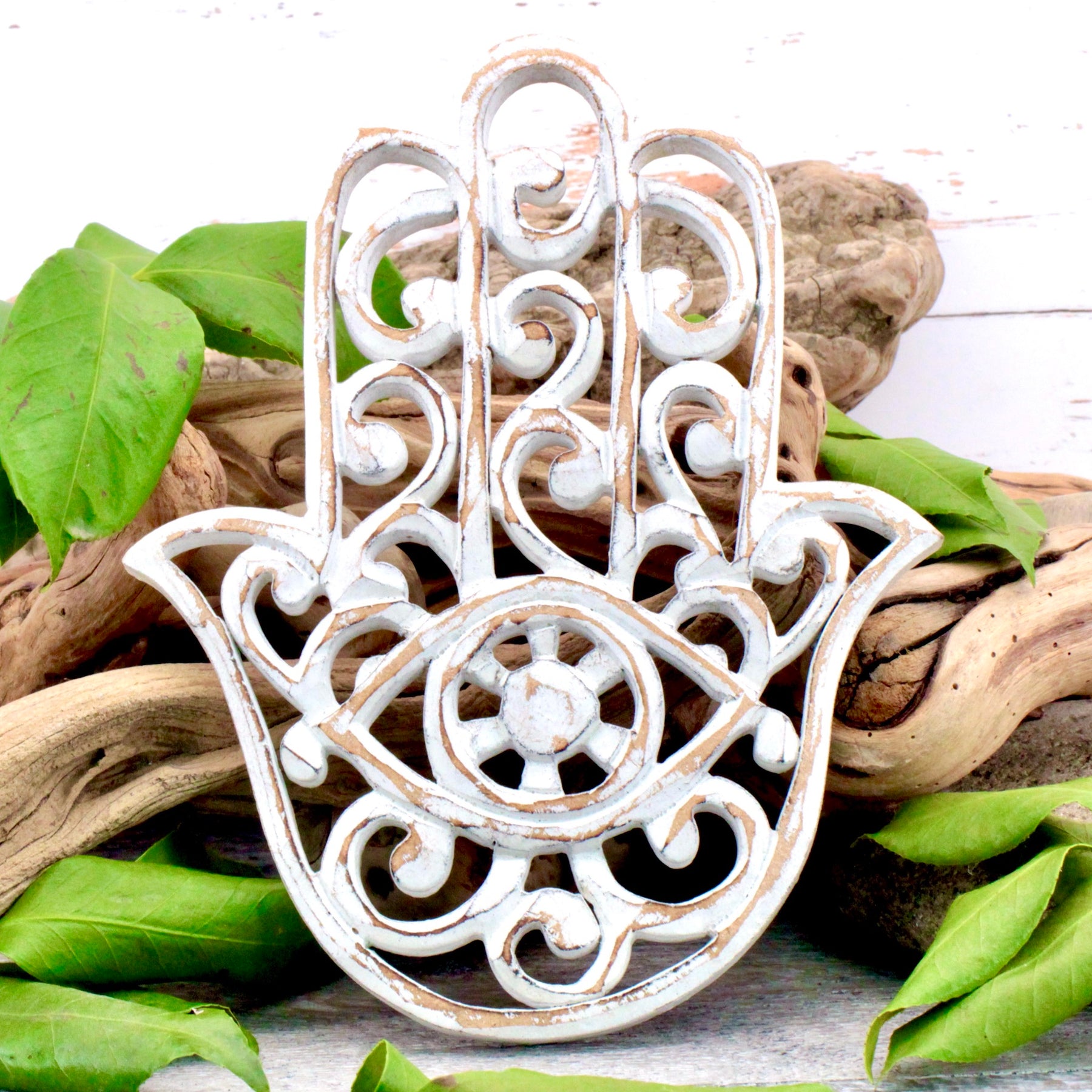 Usher in protection and prosperity with this Hamsa Wall Plaque. Available in both brown and white finishes, this plaque adds BoHo style to any room. Also makes for a unique crystal grid!
