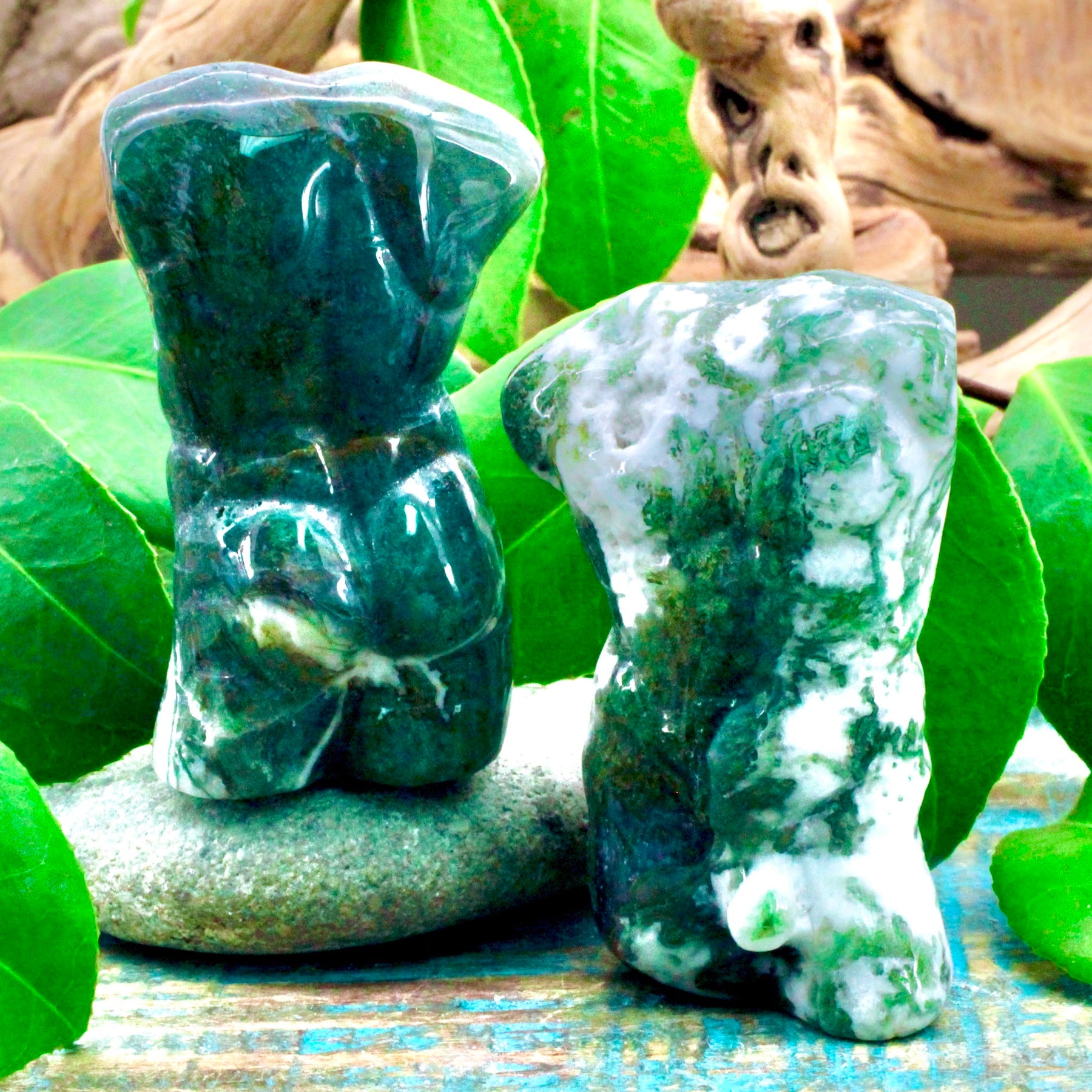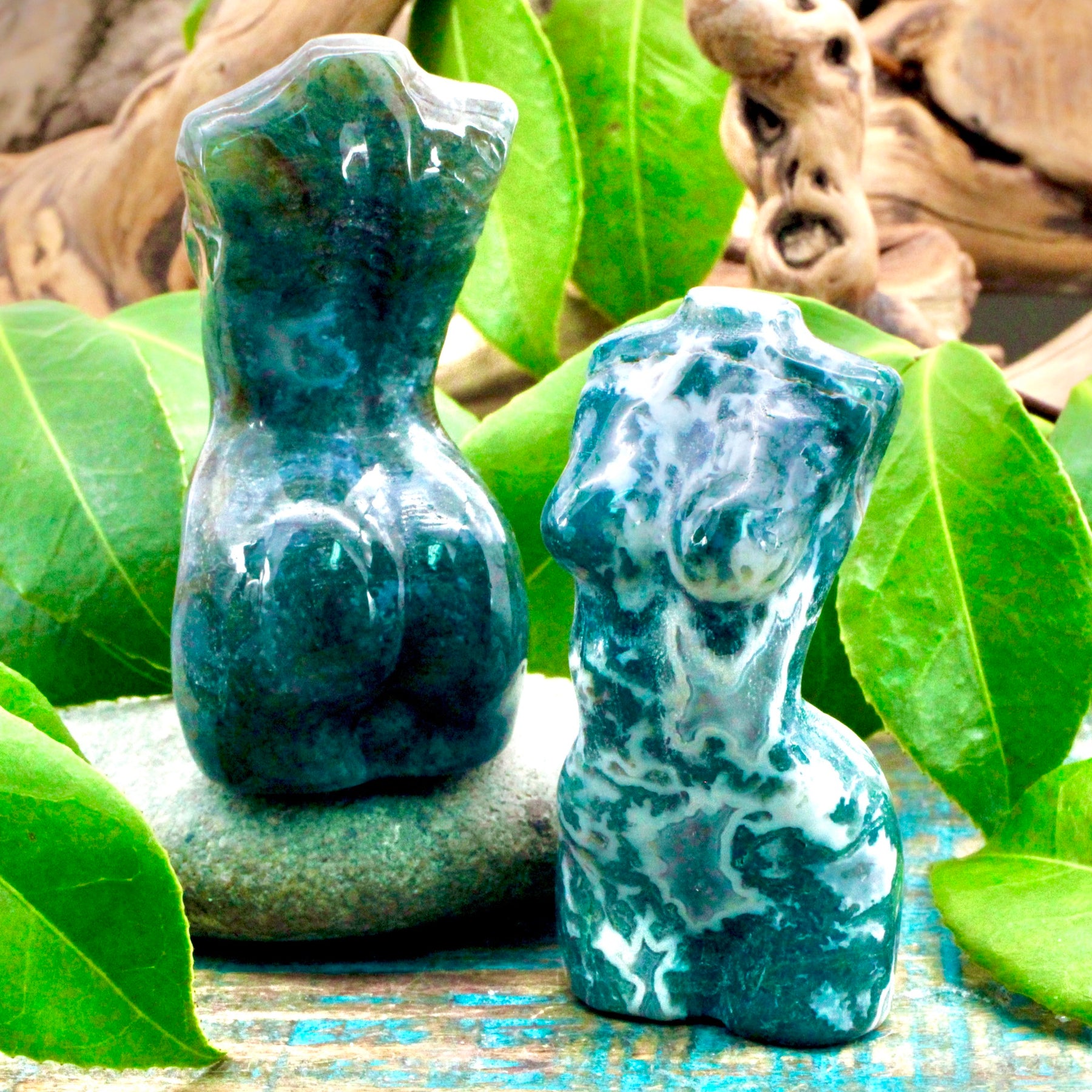 Attract good fortune and healing with this Moss Agate Torso. This carving is a lovely representation of the human form and energy of the Moss Agate can assist in supporting a healthy life.