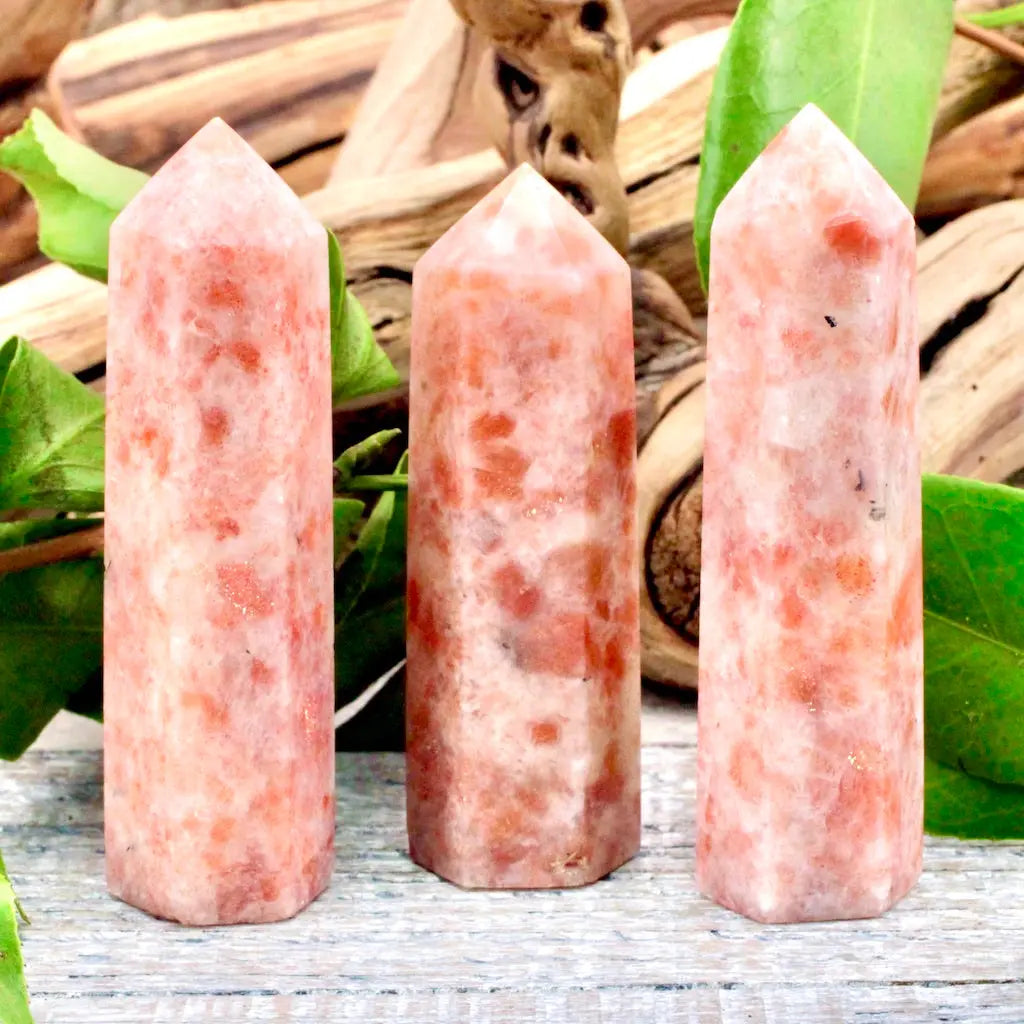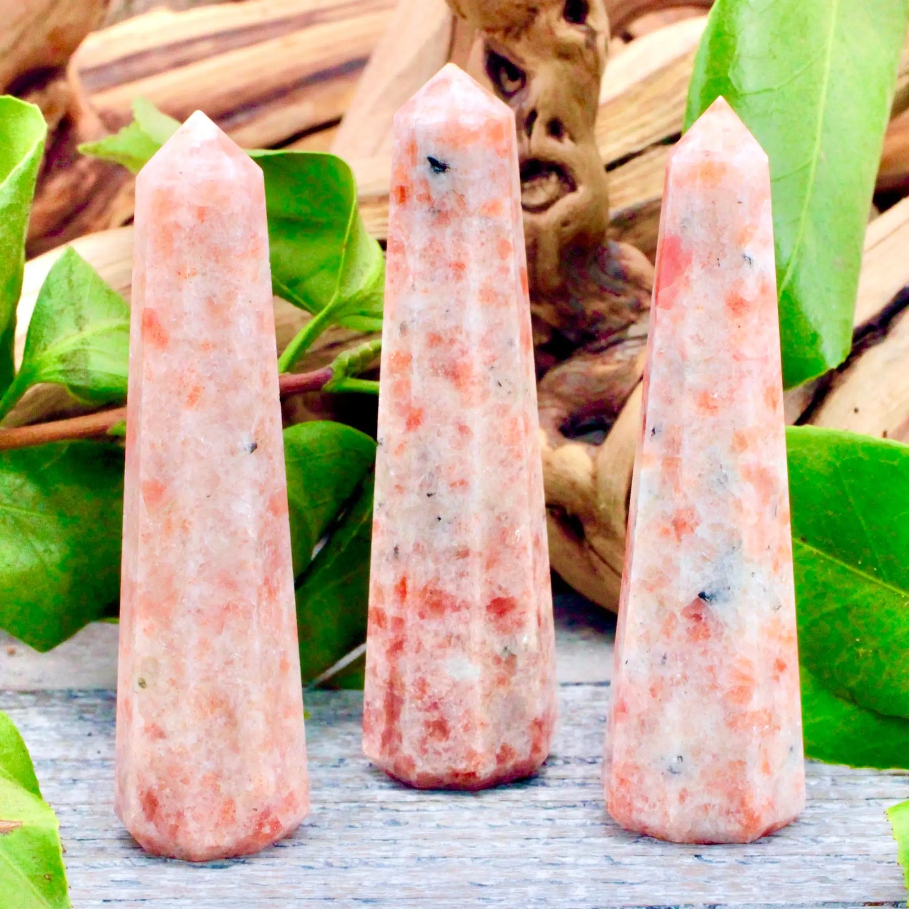 Transmute heavy emotions into joy and empowerment with a Sunstone Tower. The glittering freckles of orange and red make this a bright, happy stone and the tower shape works to direct the flow of energy in whatever direction you choose.