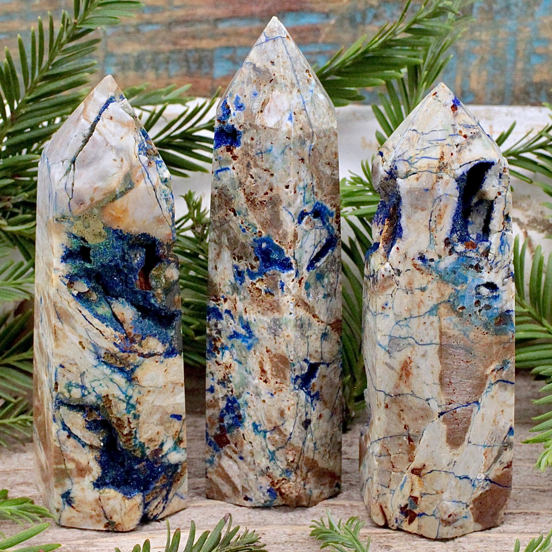 Azurite urges enlightenment, stimulates memory and facilitates communication. It helps guide and support psychic and spiritual development. It opens your mind to new perspectives and helps overcome programmed beliefs, encouraging you to reach for new insight and understanding. Azurite helps release stress and transmutes fears and phobias, allowing more light into your emotions.