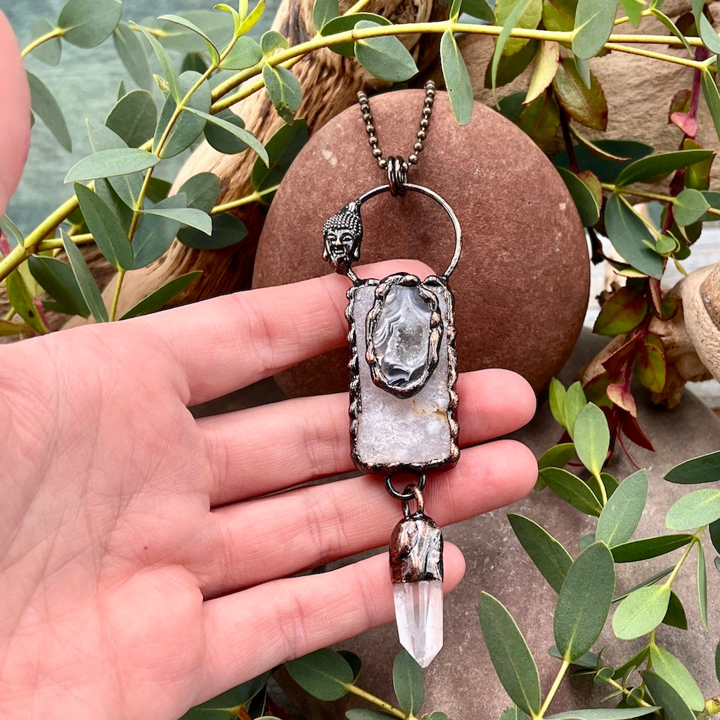 Agate Druzy Necklace with Quartz Dangle