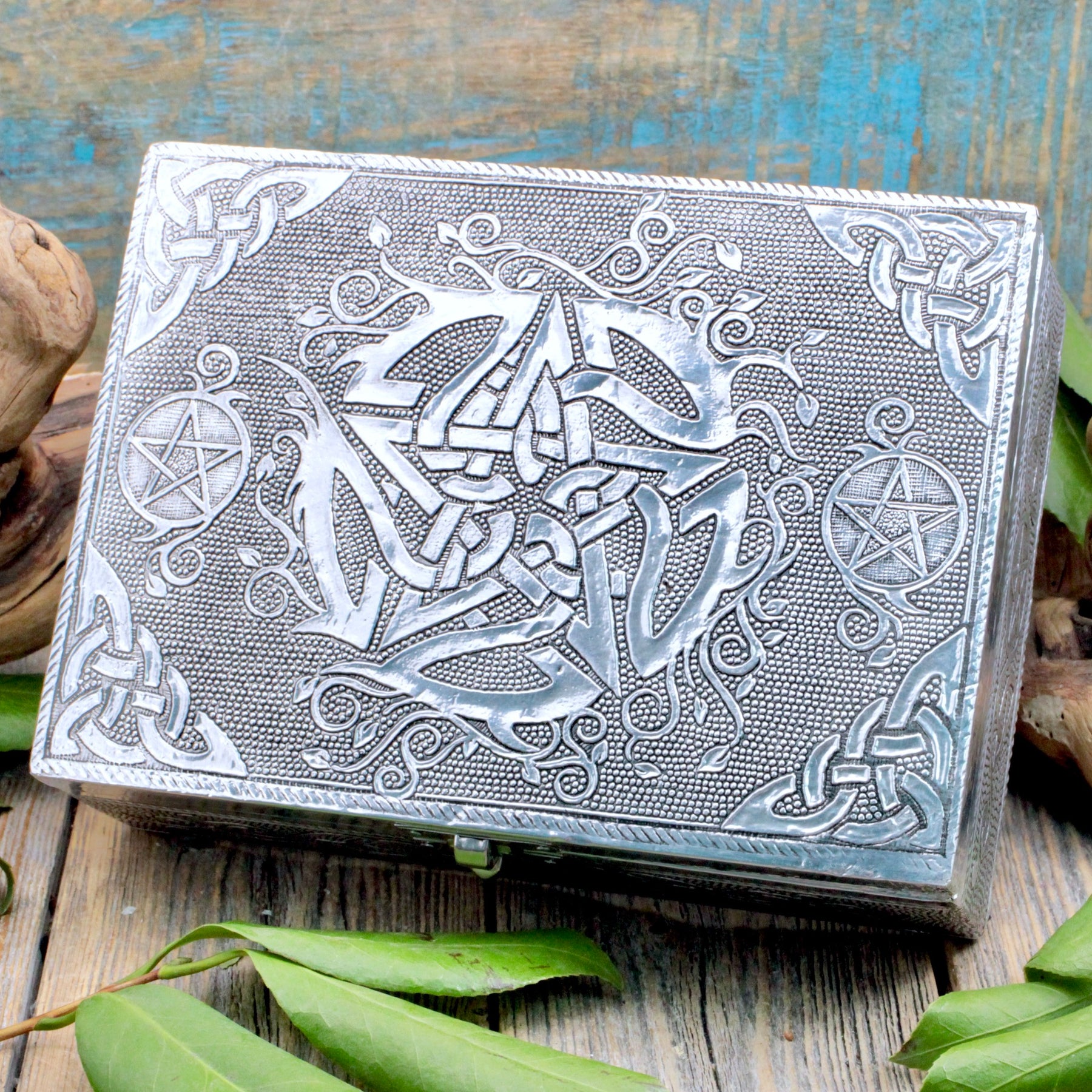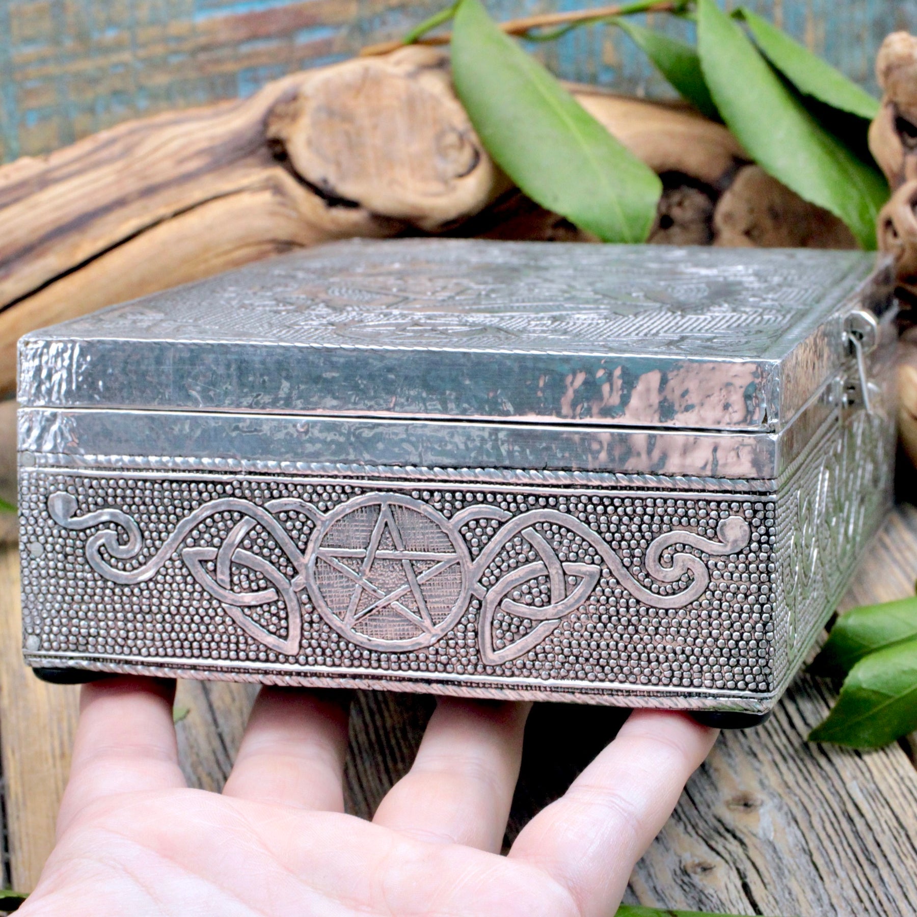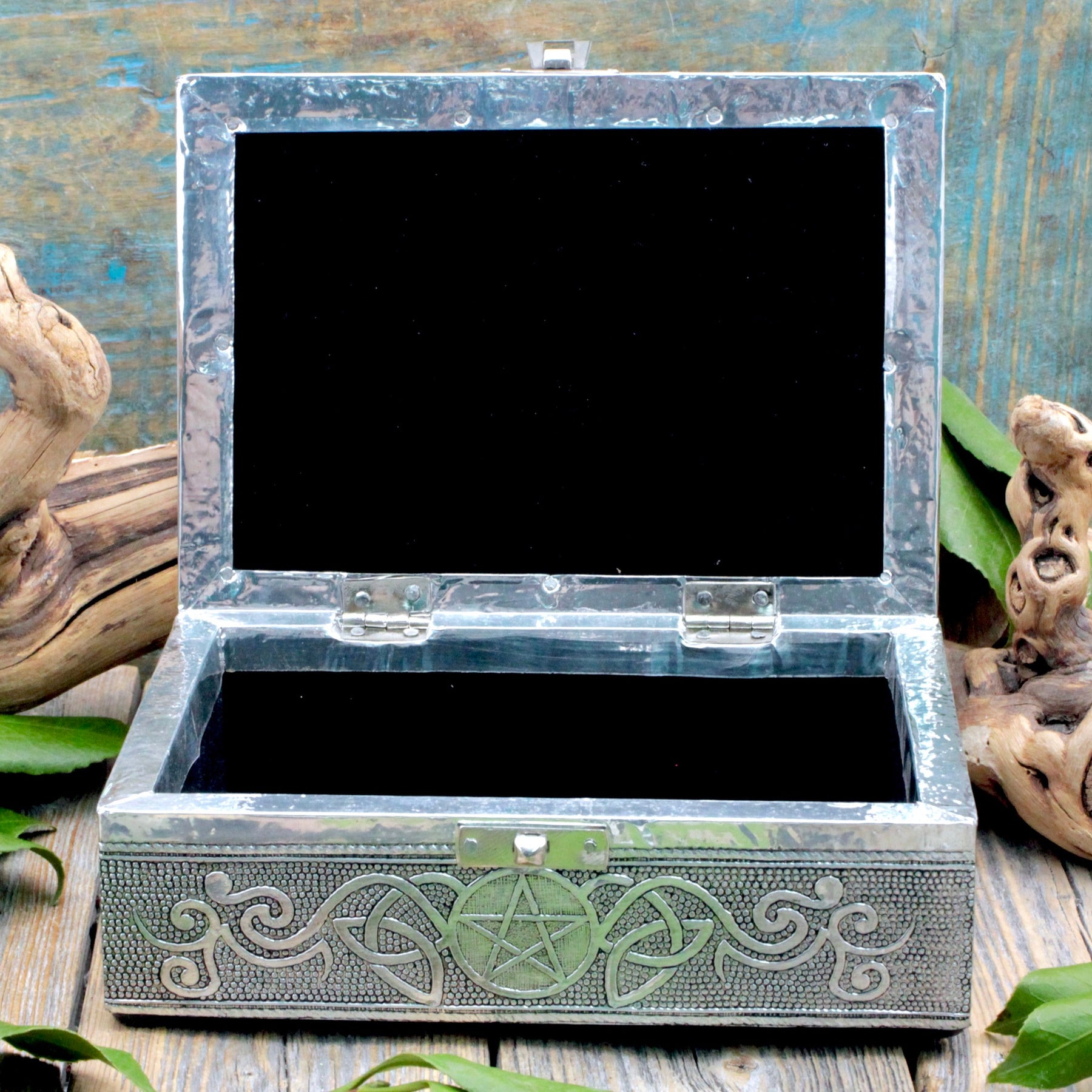 Connect to the power of the pentacle with this Pentacle Treasure Box. This box is wonderful to keep all kinds of items that are important to you in. Its soft lining is great for fragile items and is large enough for smaller Tarot and Oracle decks.