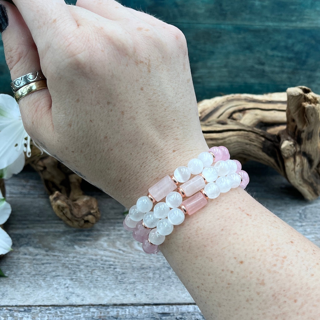 Rose Quartz & Selenite Bracelet - 8mm
