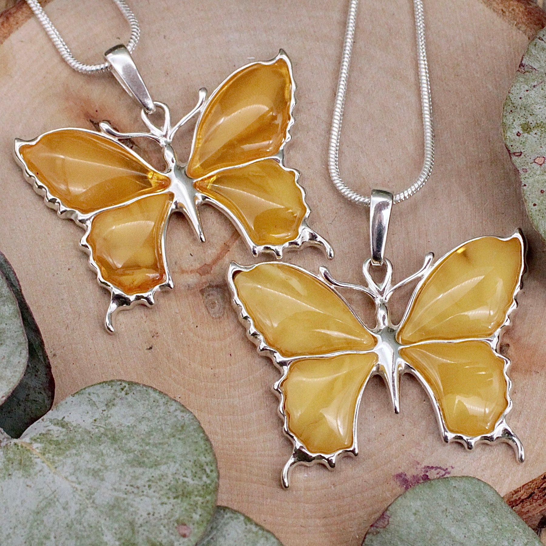 Allow this dainty Amber Butterfly Pendant to flutter into your life. Amber is an excellent companion to embrace self love and compassion for yourself and others.