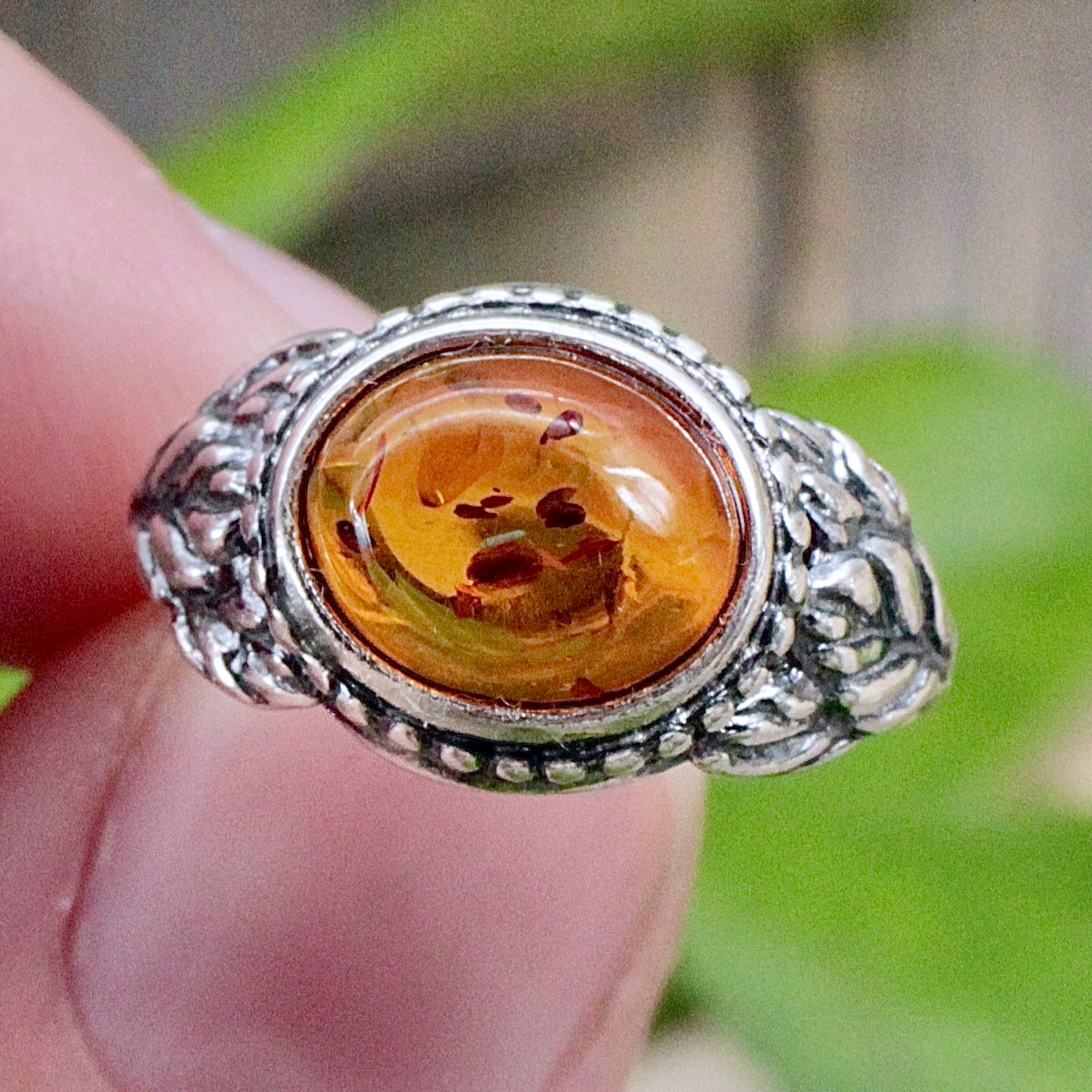 Welcome a feeling of rooted stability by incorporating this Amber Ring with Leaf Detail into your style. Adorn yourself with the enchanting allure of its exquisite golden Amber, effortlessly enhancing a variety of outfits. This precious relic from the past serves as a bridge between different eras, enabling you to immerse yourself in a timeless connection.