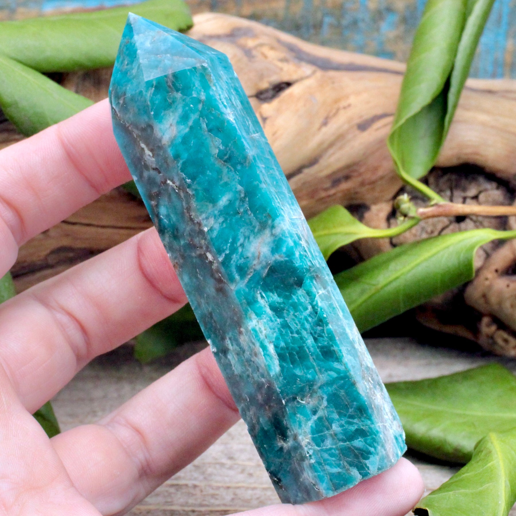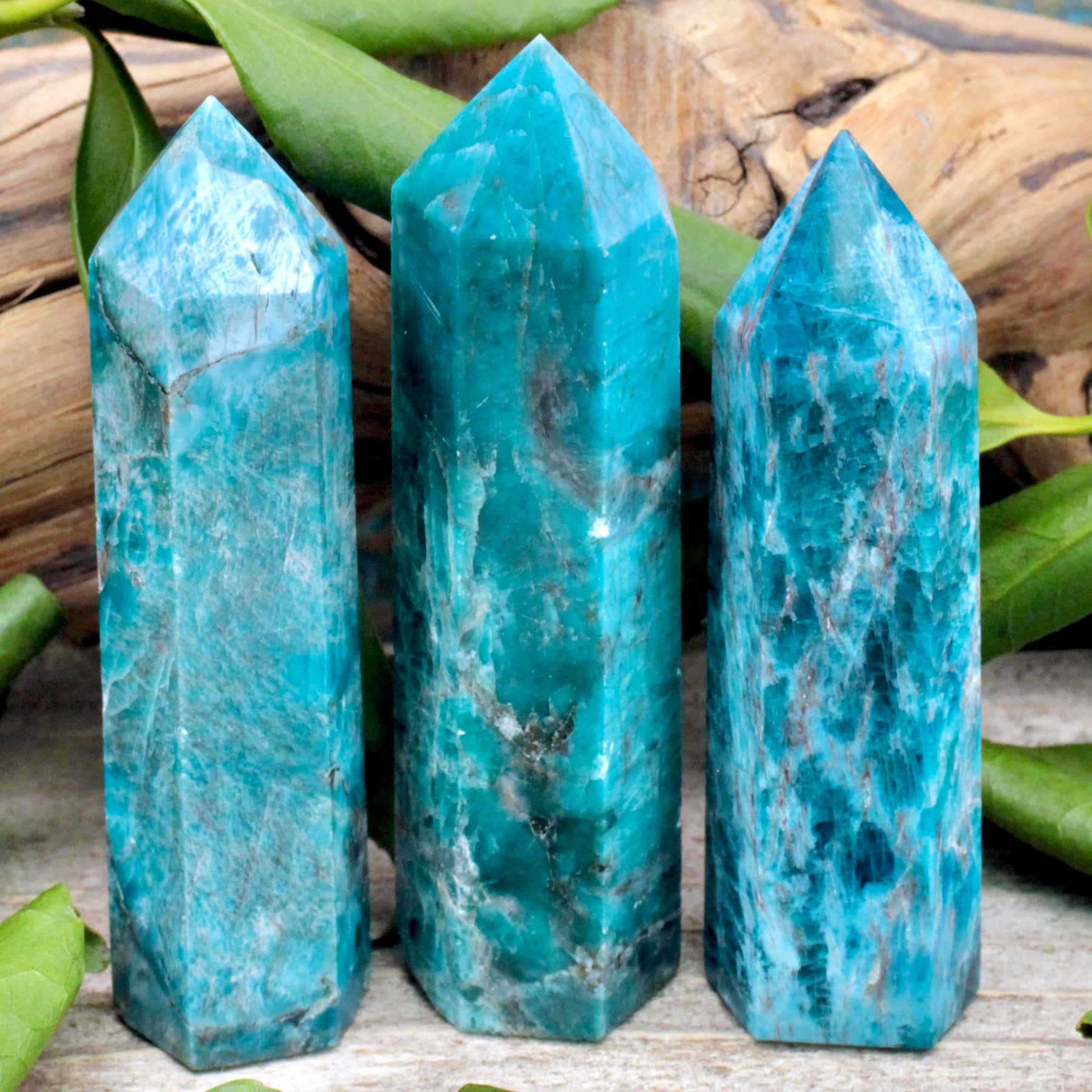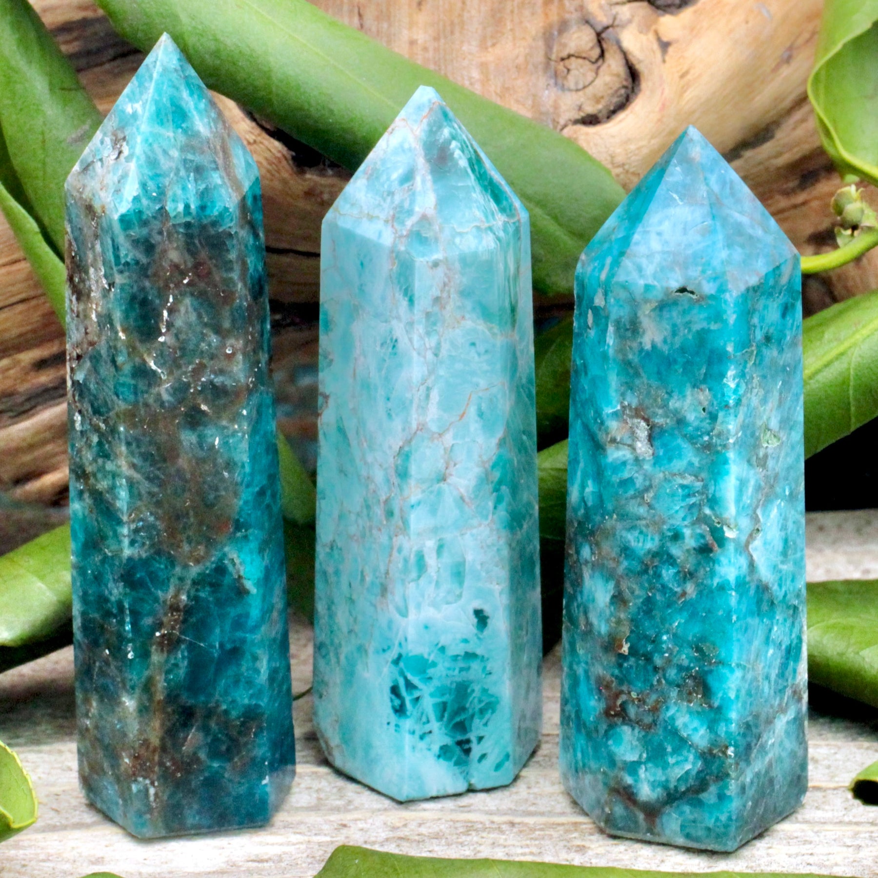 Ignite your inspiration with this Apatite Tower. Displaying a delightful array of blue hues, this charming tower showcases the diverse beauty of apatite. Keep it close to harness the energizing vibes it exudes.