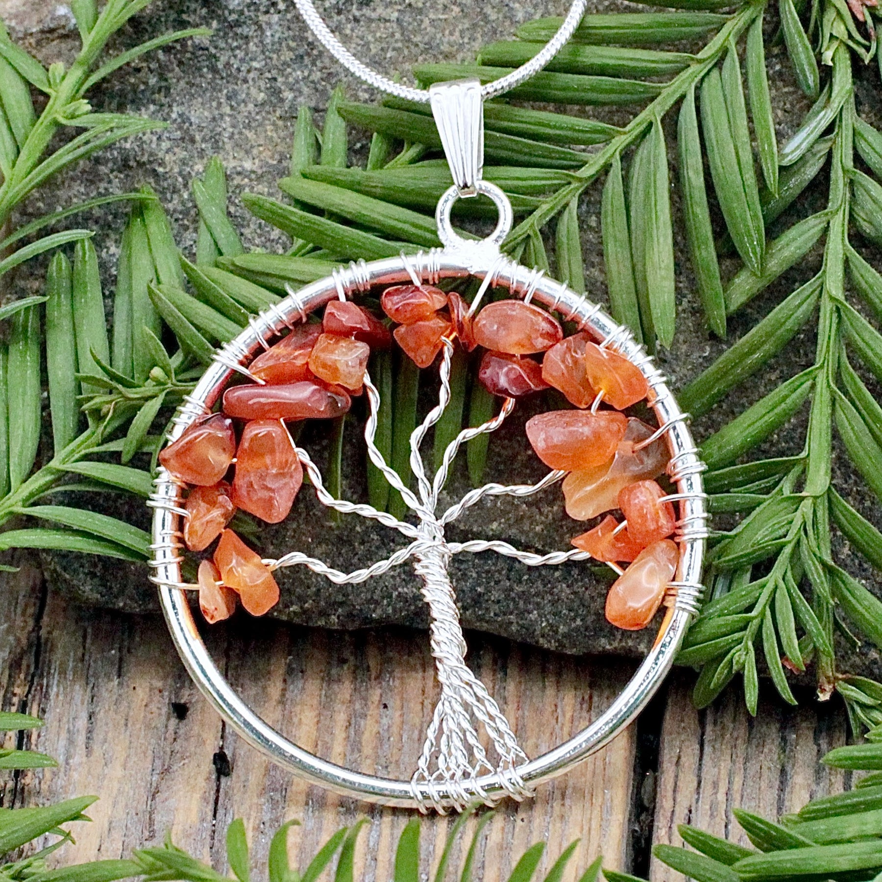Spark your ambition and unleash your creativity with this luminous Carnelian Tree of Life Pendant. With its vibrant, fiery orange hue, this pendant is a wearable beacon of positive energy, infusing inspiration into every aspect of your path.