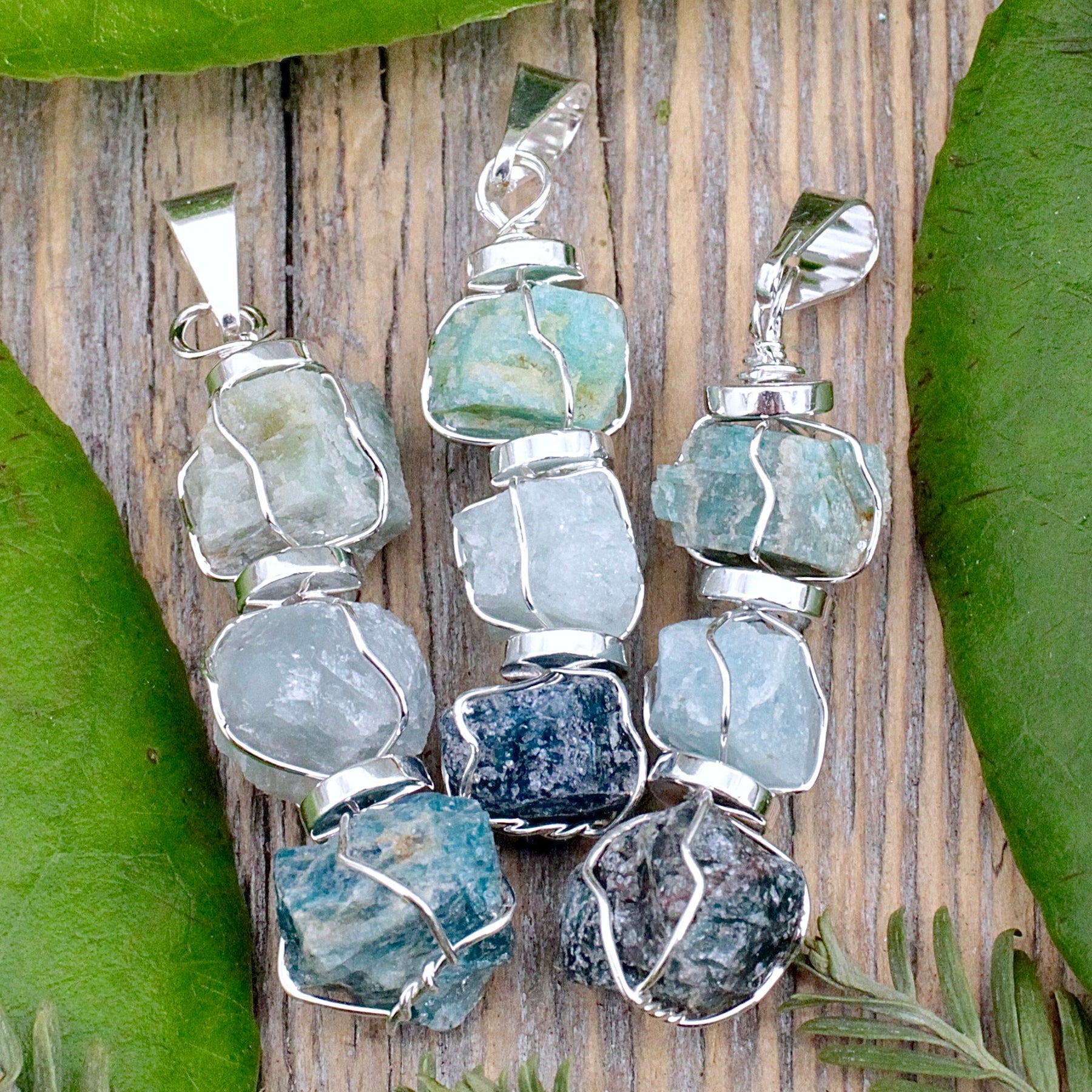 Empower your voice with this Throat Chakra Three Stone Pendant. Crafted with Amazonite, Aquamarine, and Apatite, it promotes self-expression and communication. Speak your truth confidently with this harmonious blend of stones.
