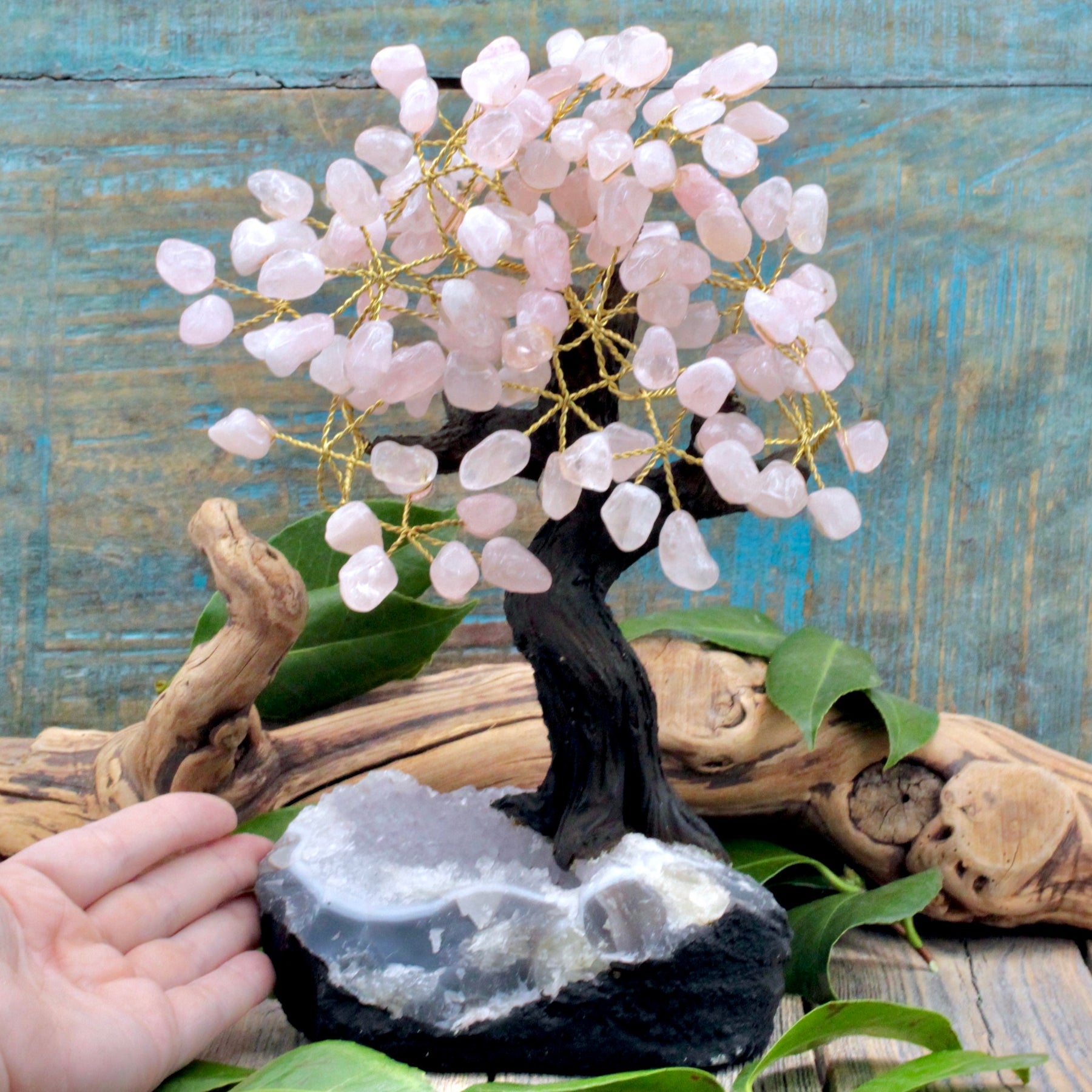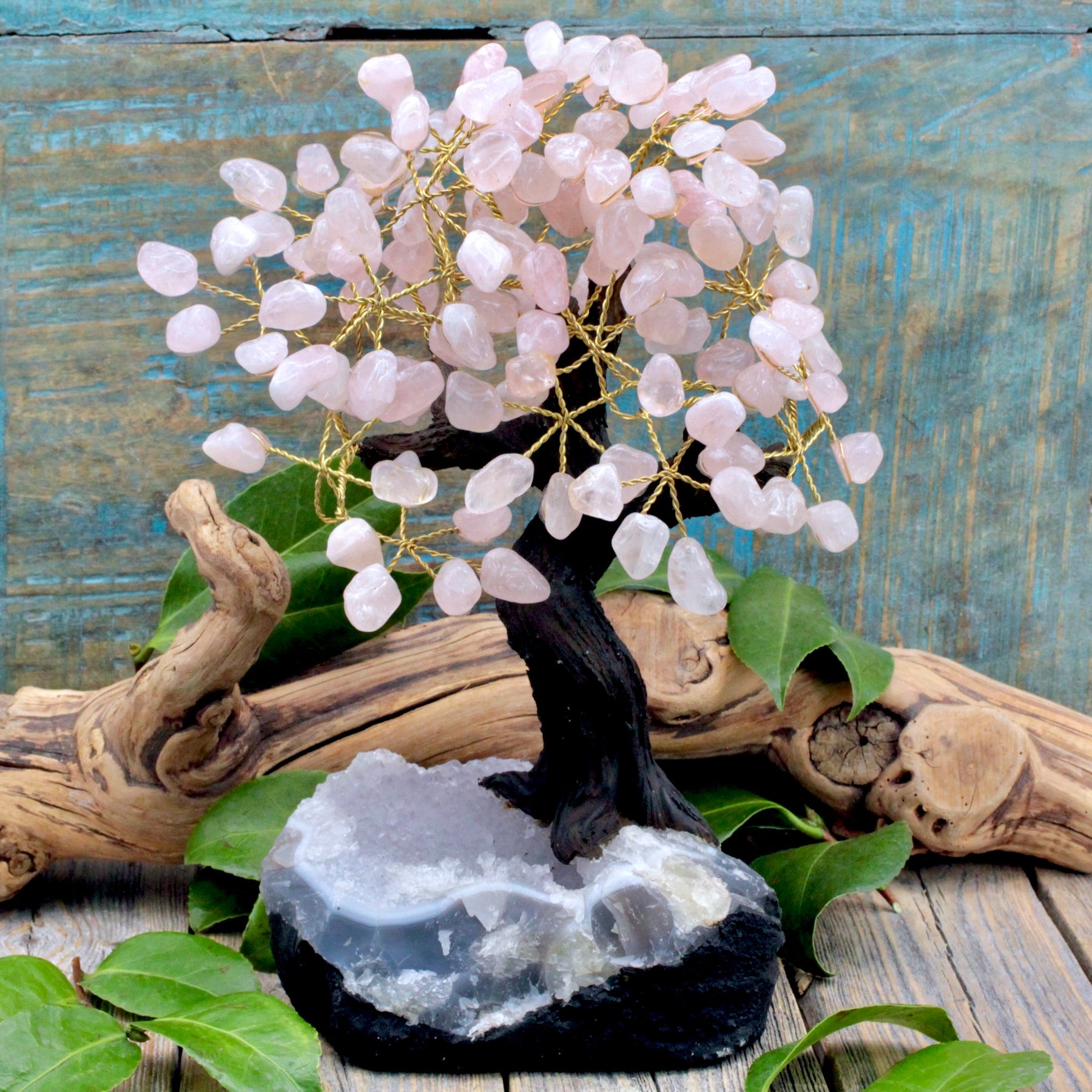 Welcome the soothing embrace of love and tranquility into your living environment with this captivating Rose Quartz Crystal Tree with Amethyst Cluster Base. This charming creation will bestow your space with a loving aura, wherever it graces. Let the calming presence of Rose Quartz envelop your surroundings, imbuing your home and existence with a tender and affectionate energy.