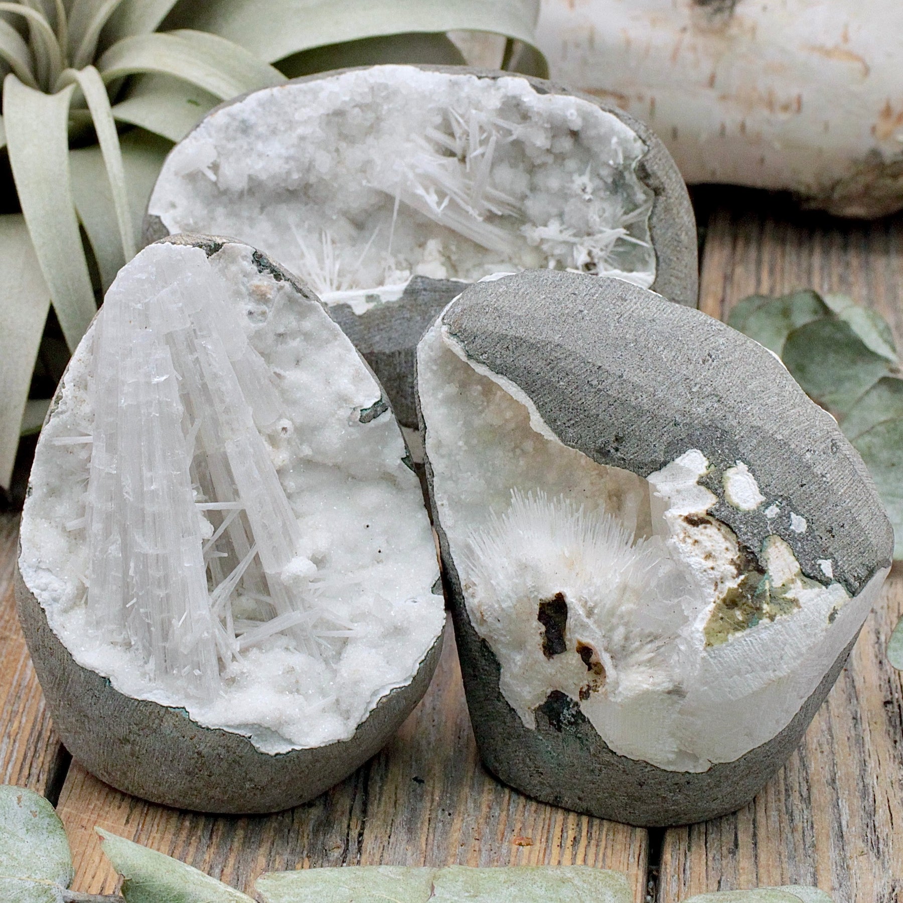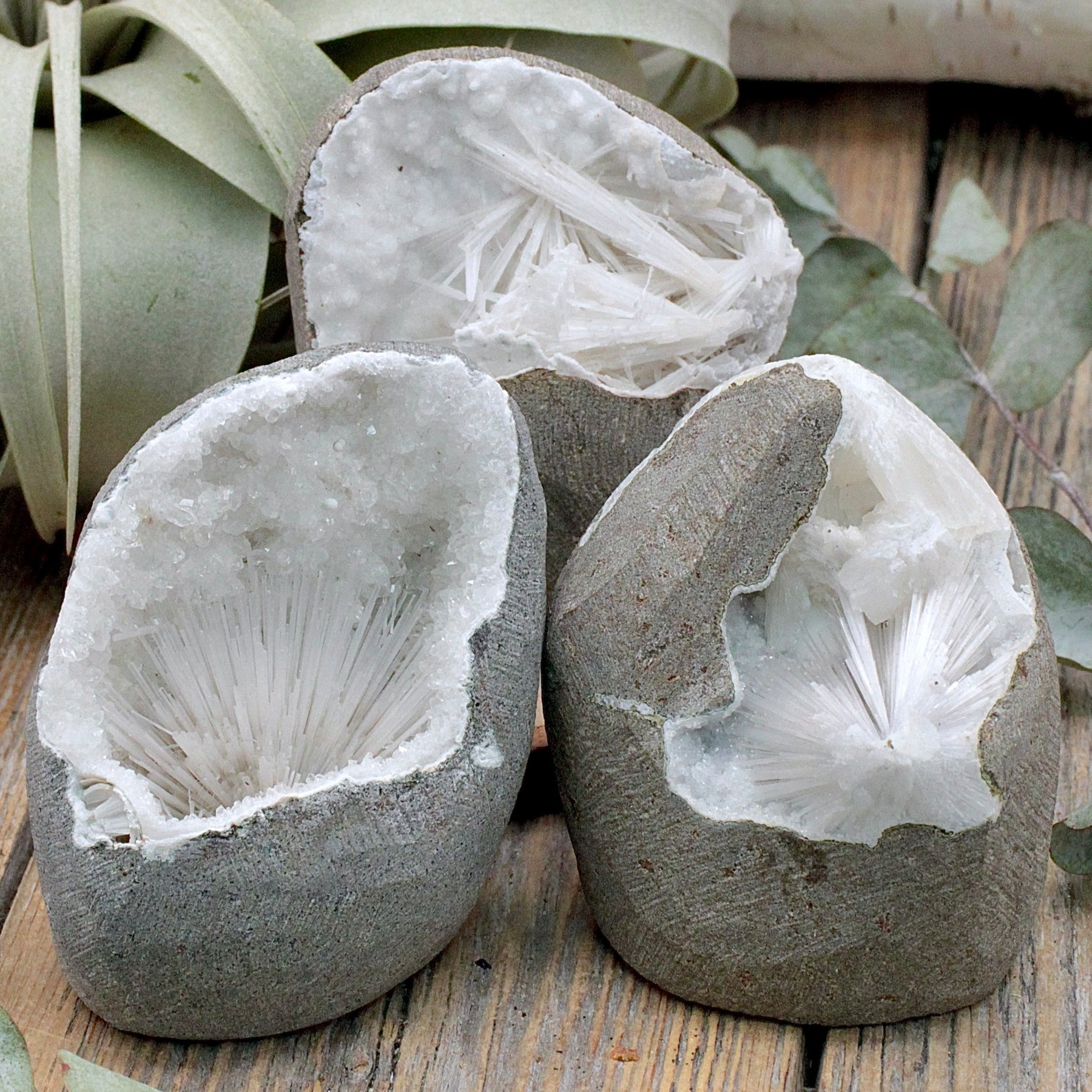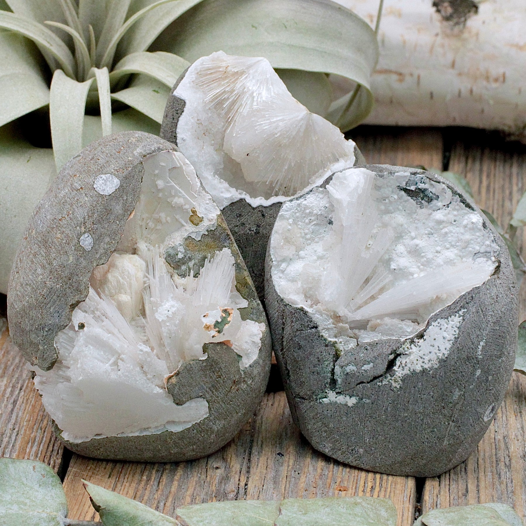Raise your vibration to the next level with a Scolecite Cutbase. This rare and wonderful stone has extremely fragile, hair-like crystals that form unique starbursts - Each piece is a completely one of a kind treasure!