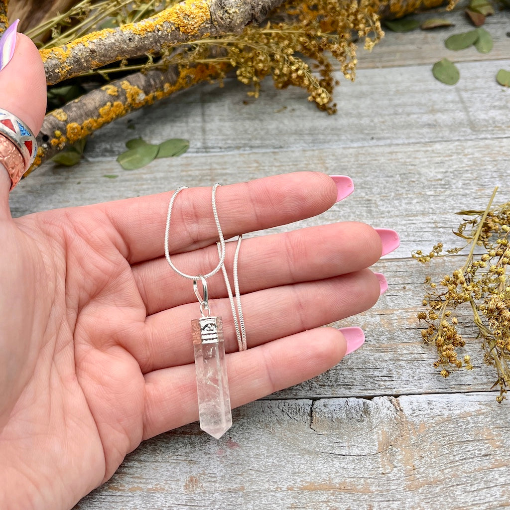 Quartz is a powerful healing stone and energy amplifier. It energizes all levels of consciousness and clears negative energies. The stone is excellent for meditation and enhances communication with the higher self and spirit guides. A reflector of every color of the rainbow, Quartz stimulates, clears and balances all your chakras.