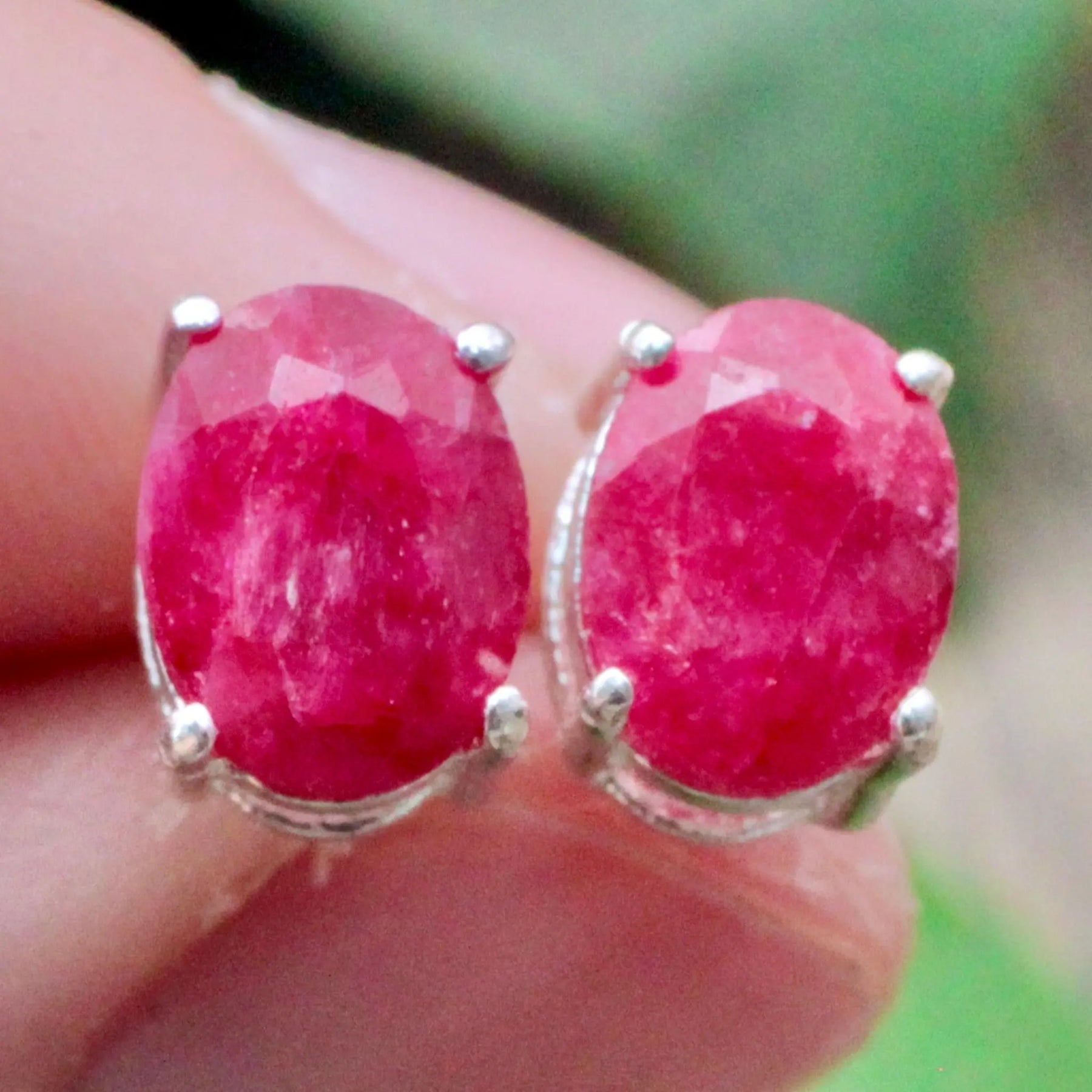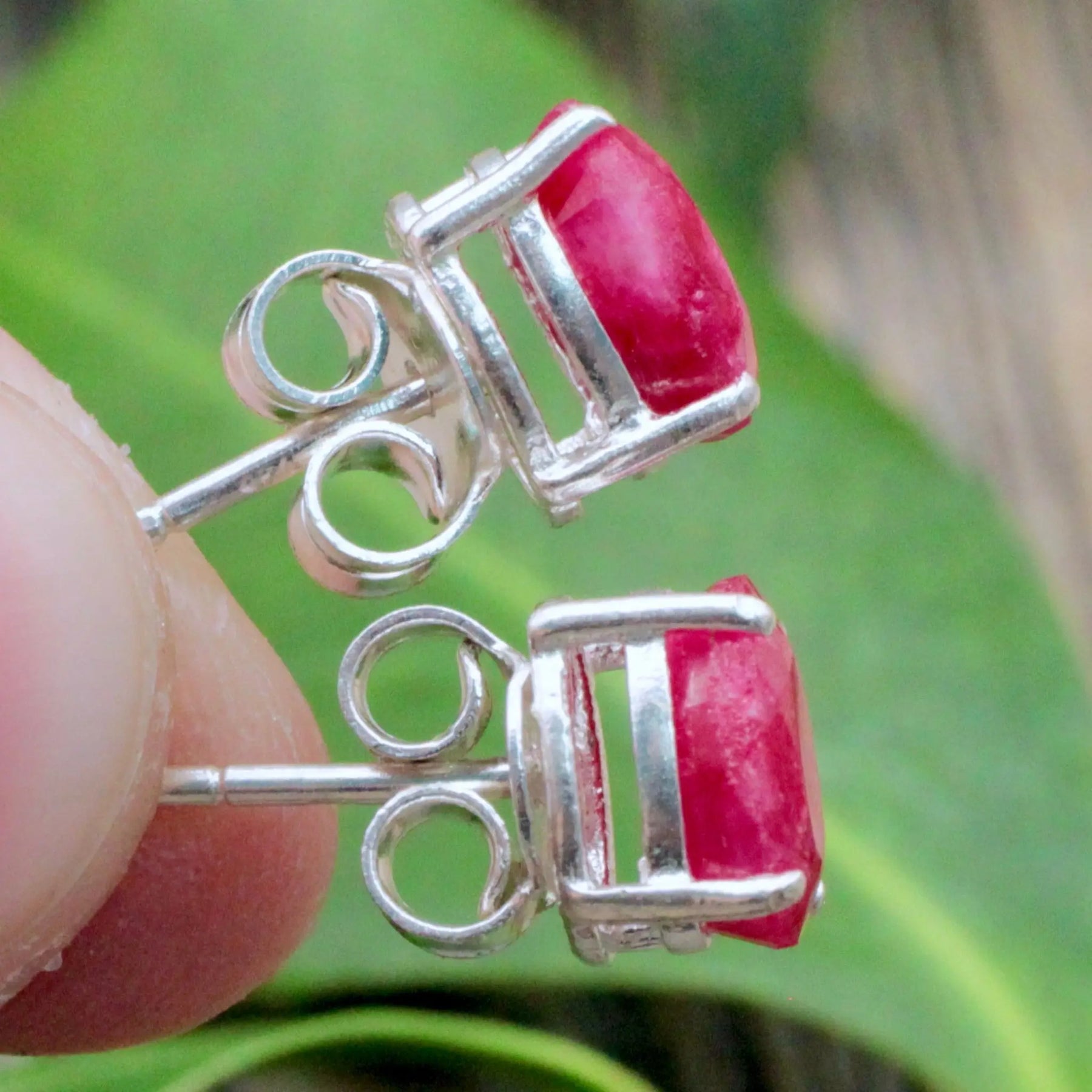 Ruby Stud Earrings Pronged in Sterling Silver