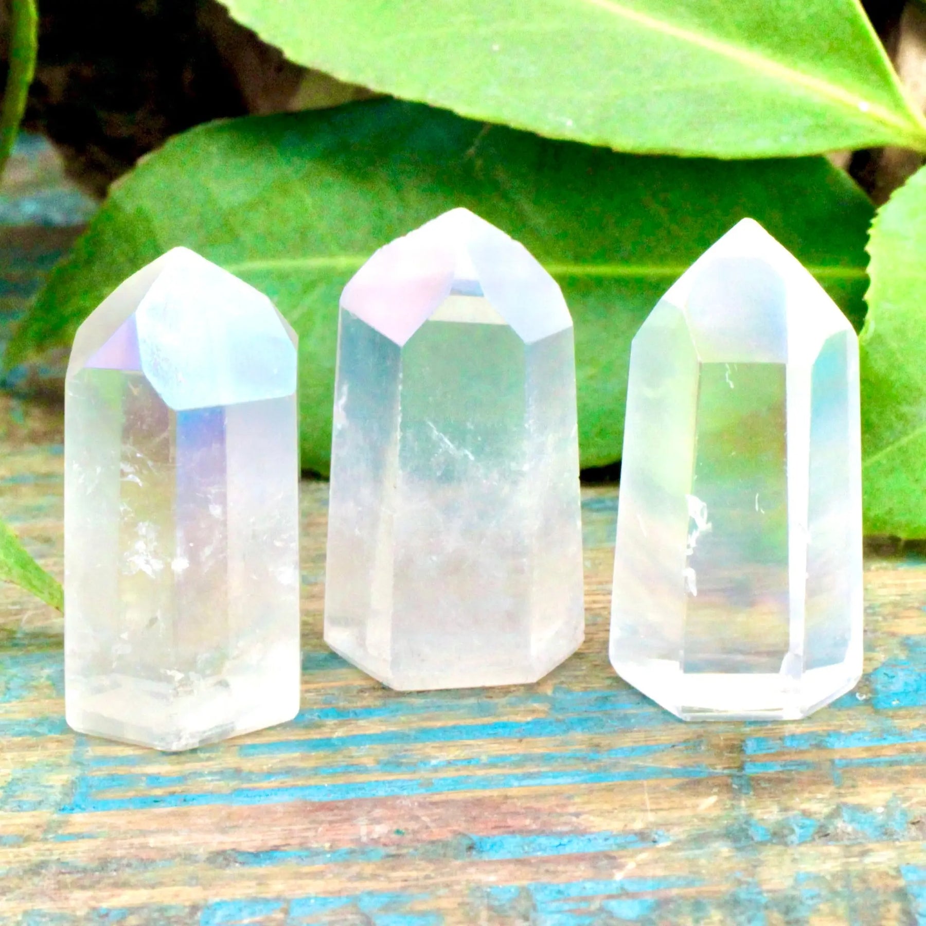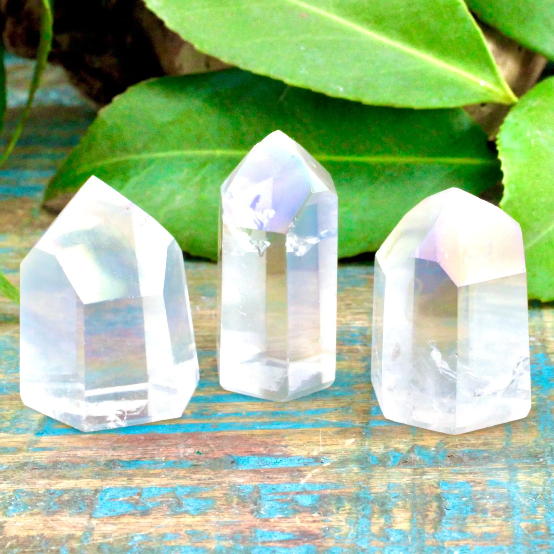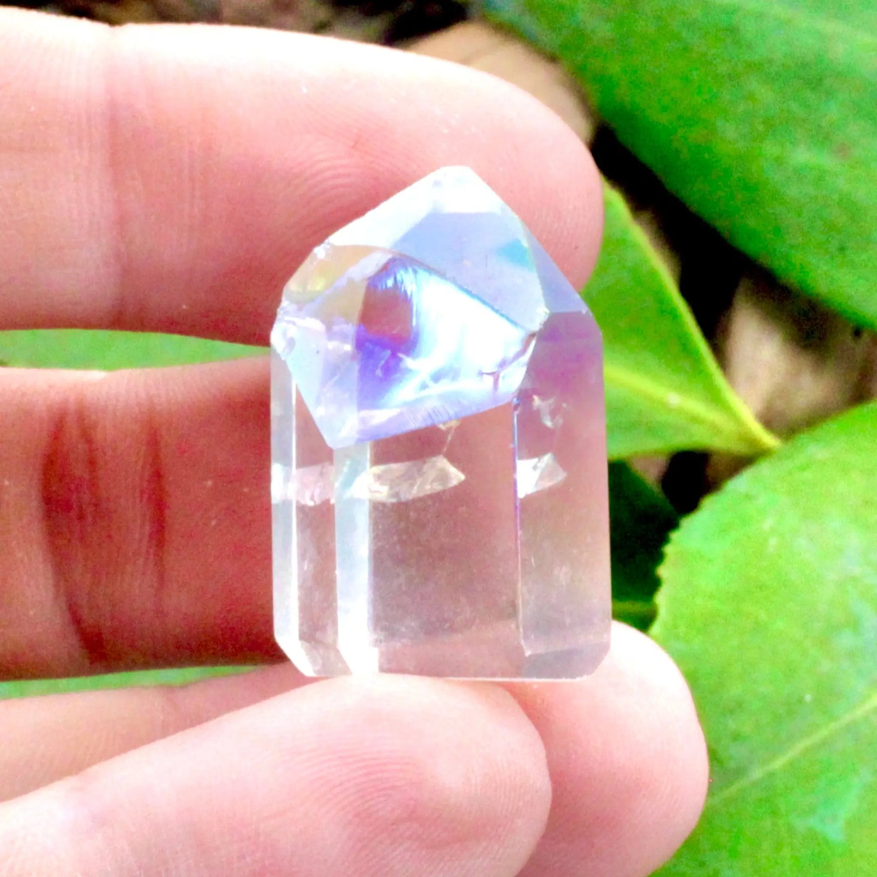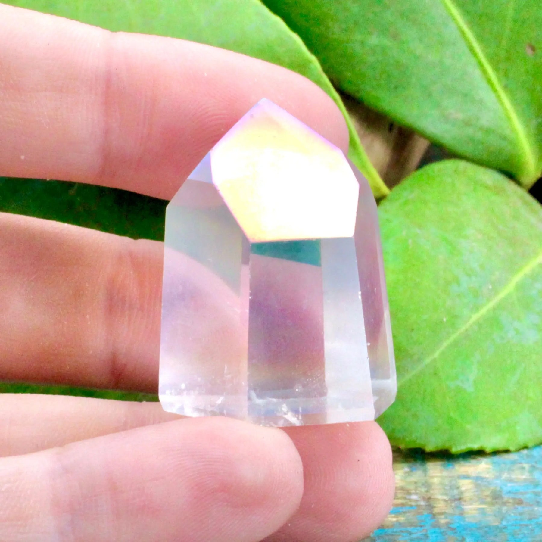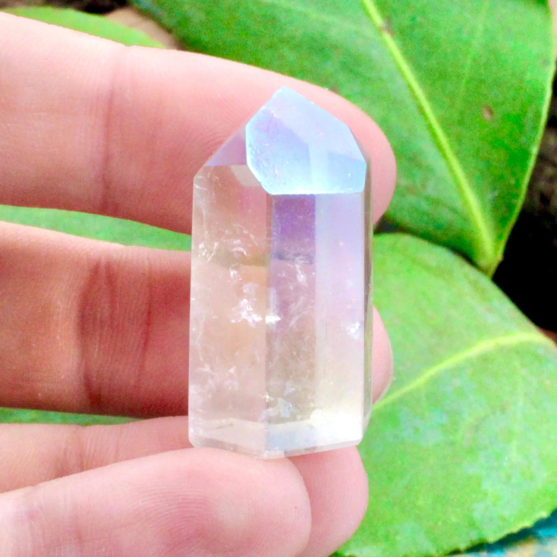 Invite positivity and joy into your life with this mini Angel Aura Quartz tower. Angel Aura Quartz is a stone of uplifting energy and and elevated spirituality that is sure to improve anyone's mood and connection with higher beings.