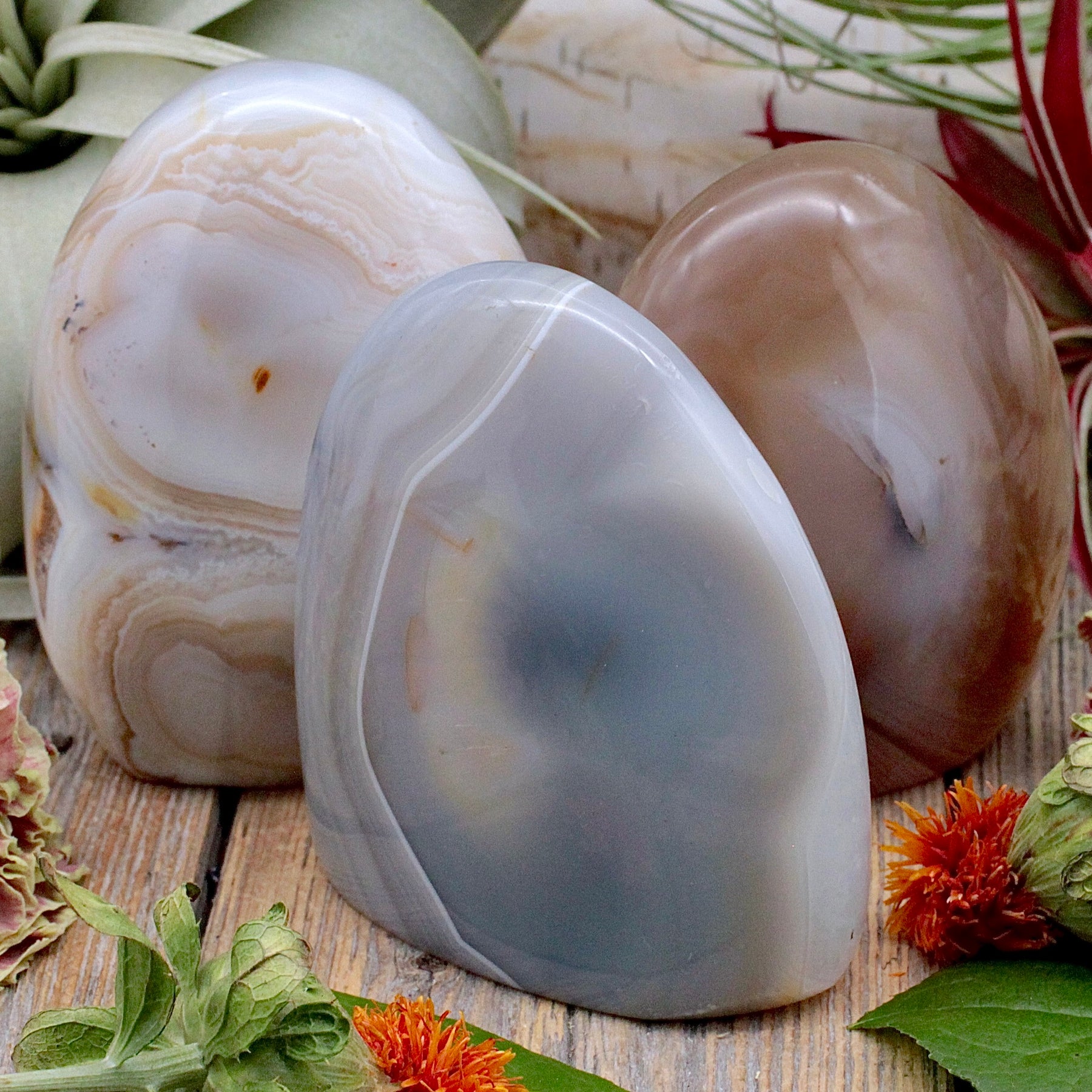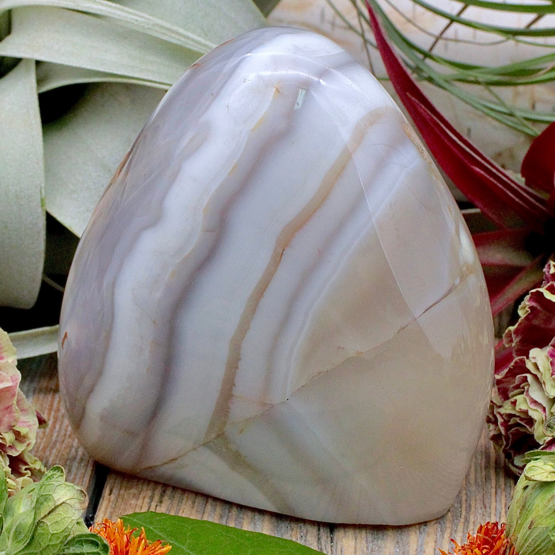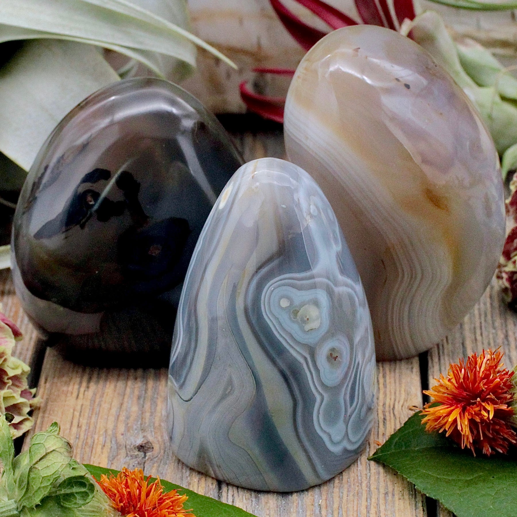 A grounding stone that balances the mind, body, and spirit. It heals the heart of past wounds and encourages perseverance. This stone facilitates self-acceptance, helping us be our most authentic selves. It also deflects anger and negativity. Agate leads you to a path of personal and spiritual growth.