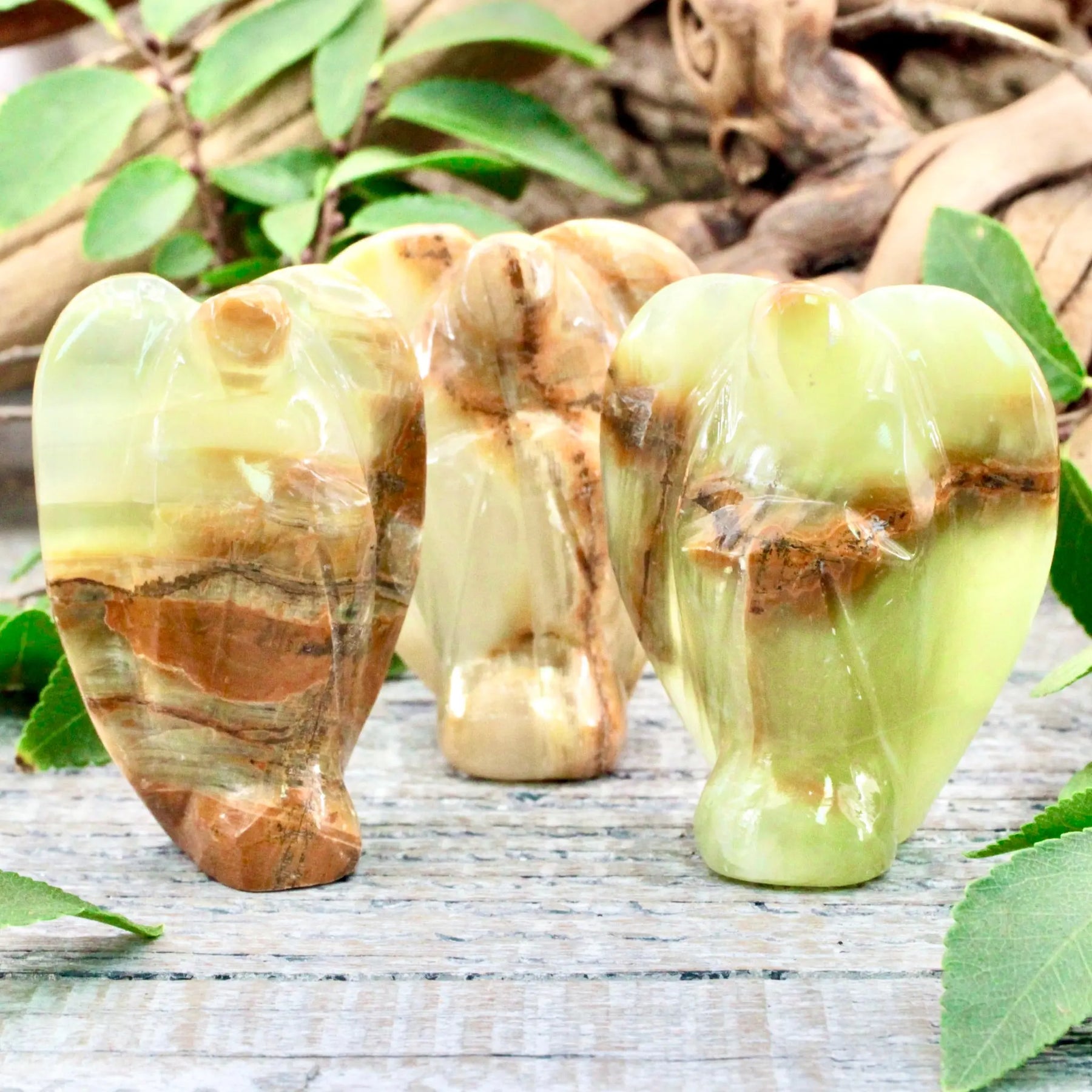 Reawaken your inner strength with this Calcite angel carving. Calcite is stone of growth and balance. It helps us to make better decisions, allowing our self-esteem to grow, and our self confidence to strengthen.