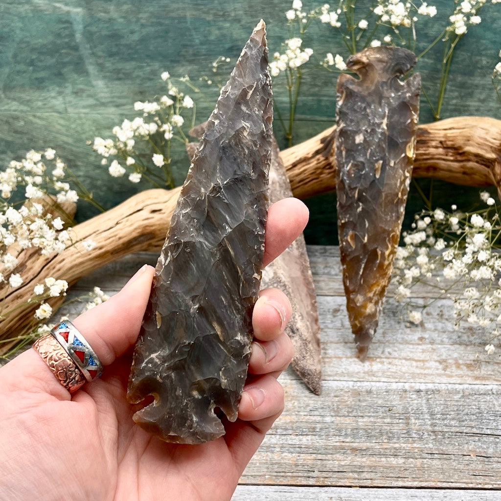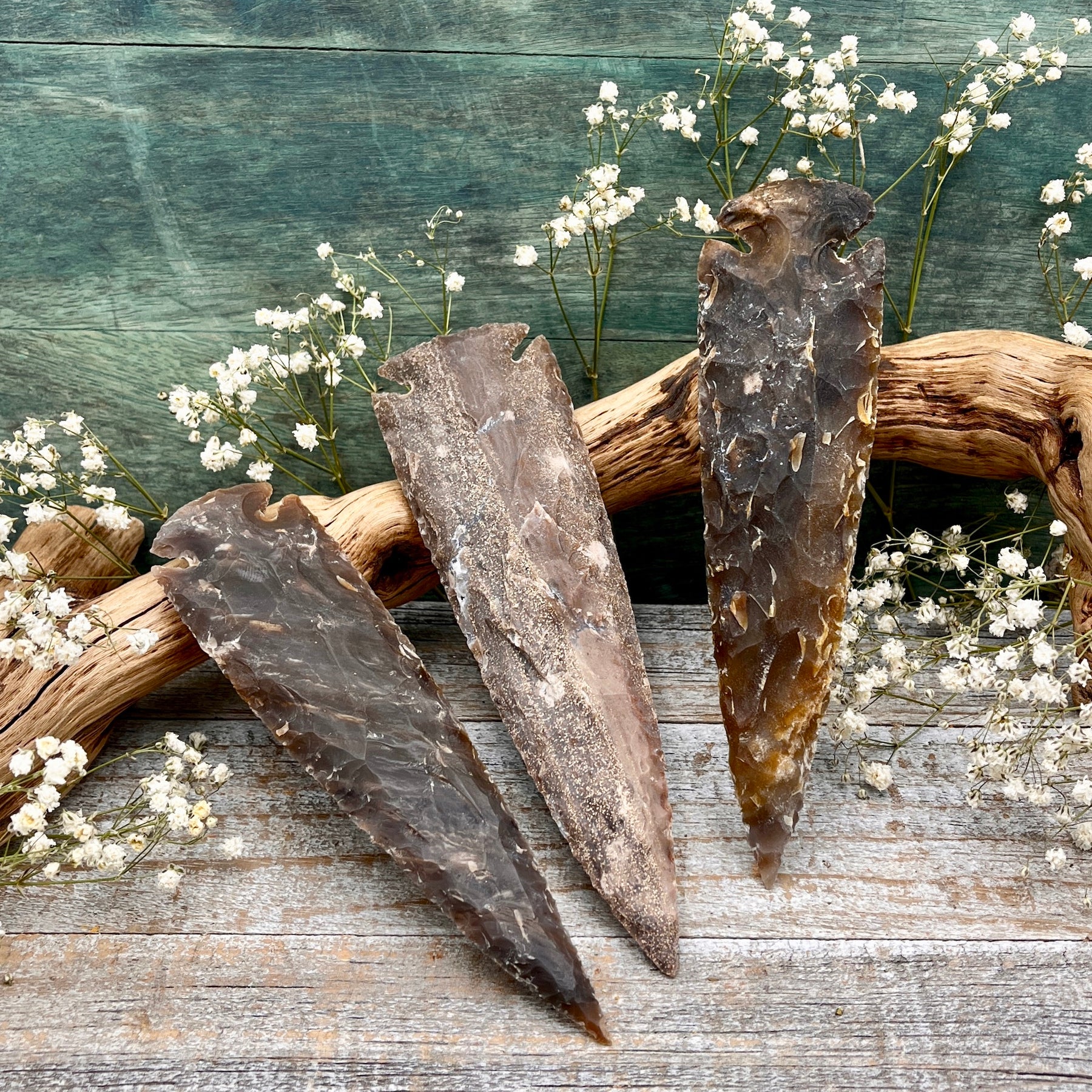 Cut through the cords of what no longer serves you with this Jasper Arrowhead. This beautifully knapped arrowhead works to cleanse negative energy and clears electromagnetic stress.