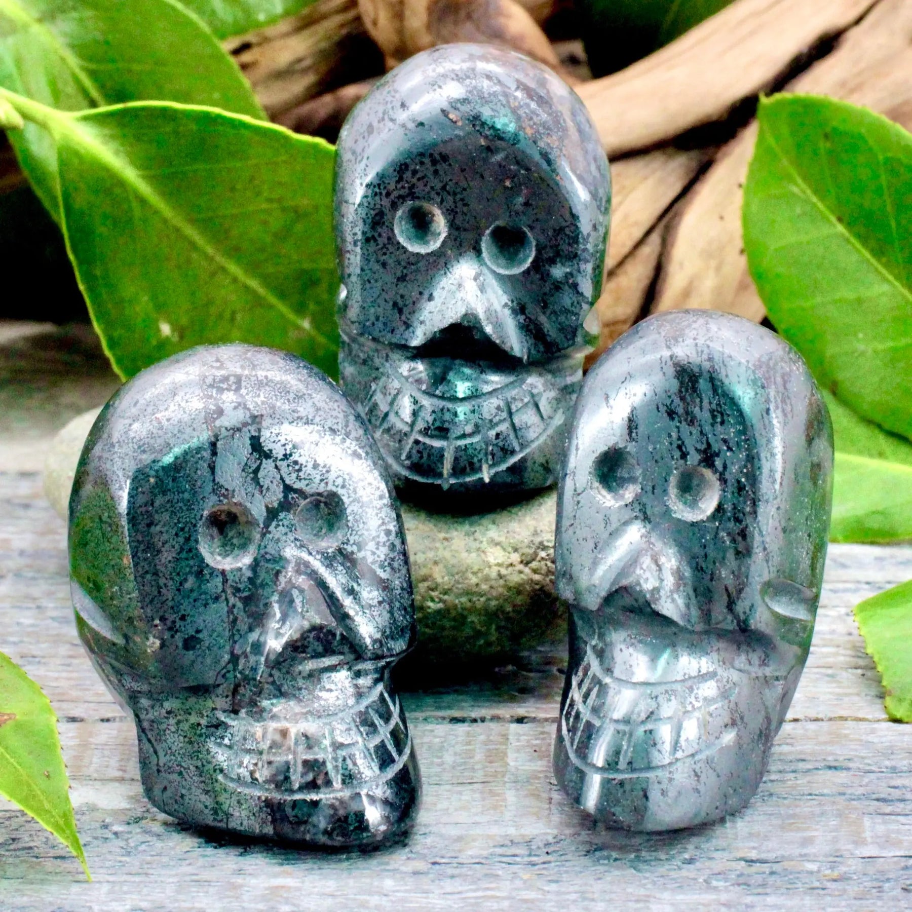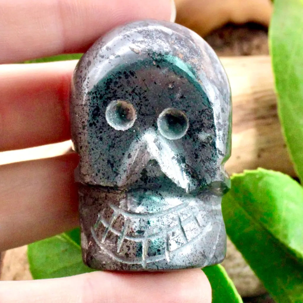 Improve your memory and concentration with this Hematite skull. Hematite is not only a grounding stone but a stone that improves the mind and balances its connection to our bodies.