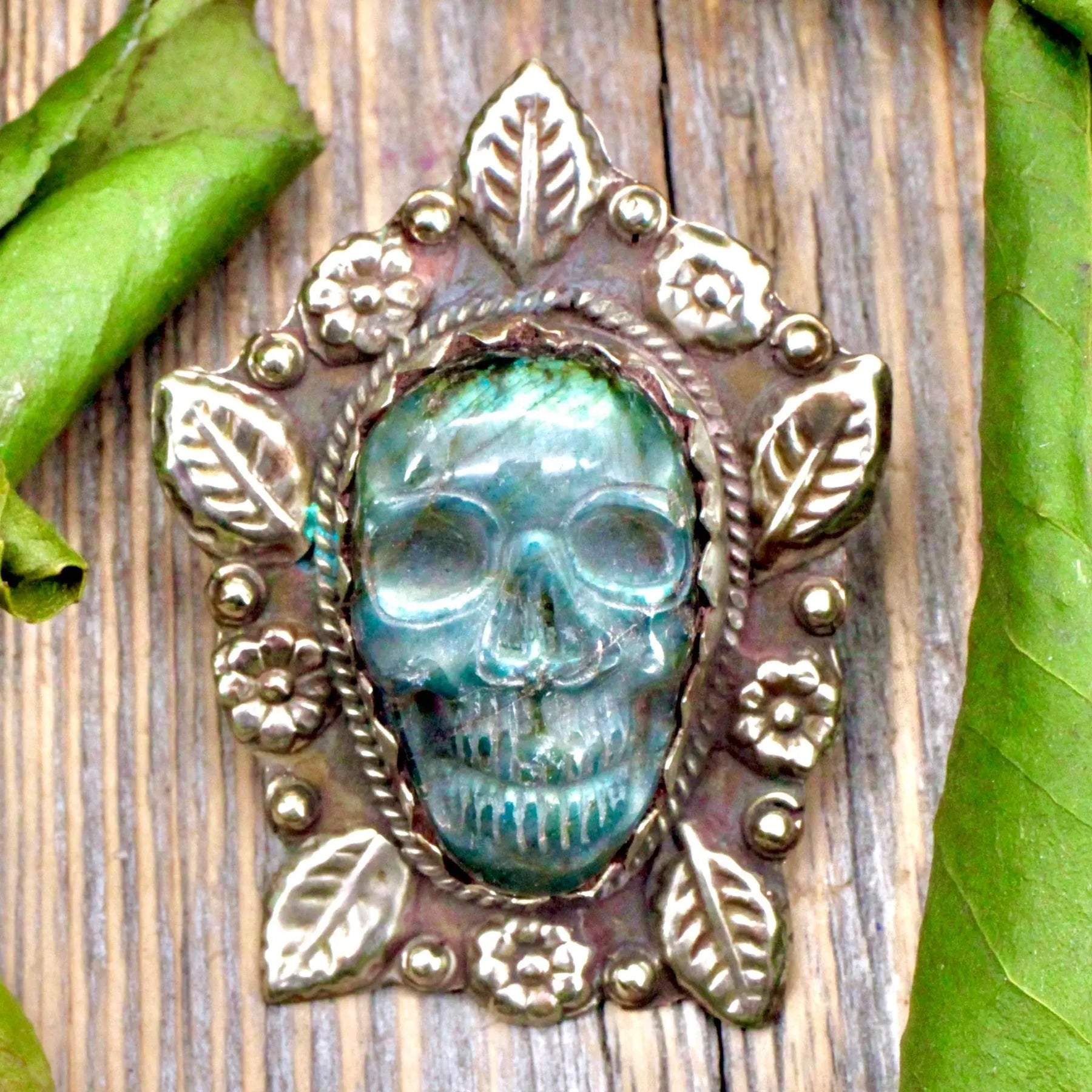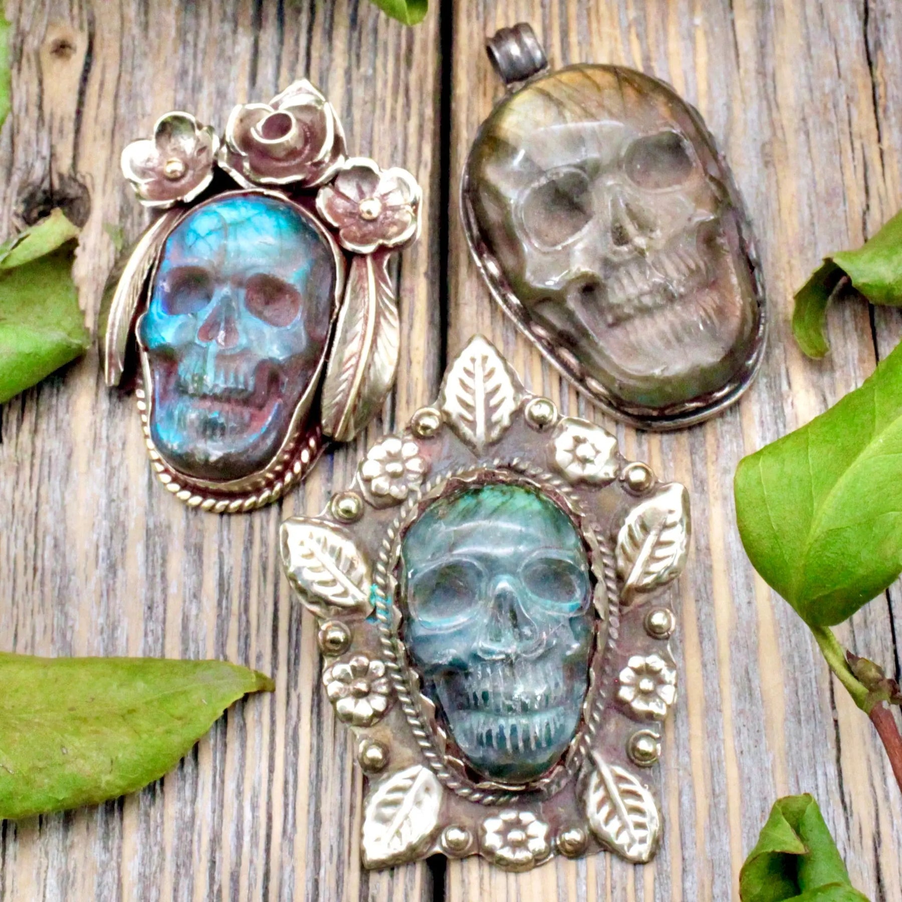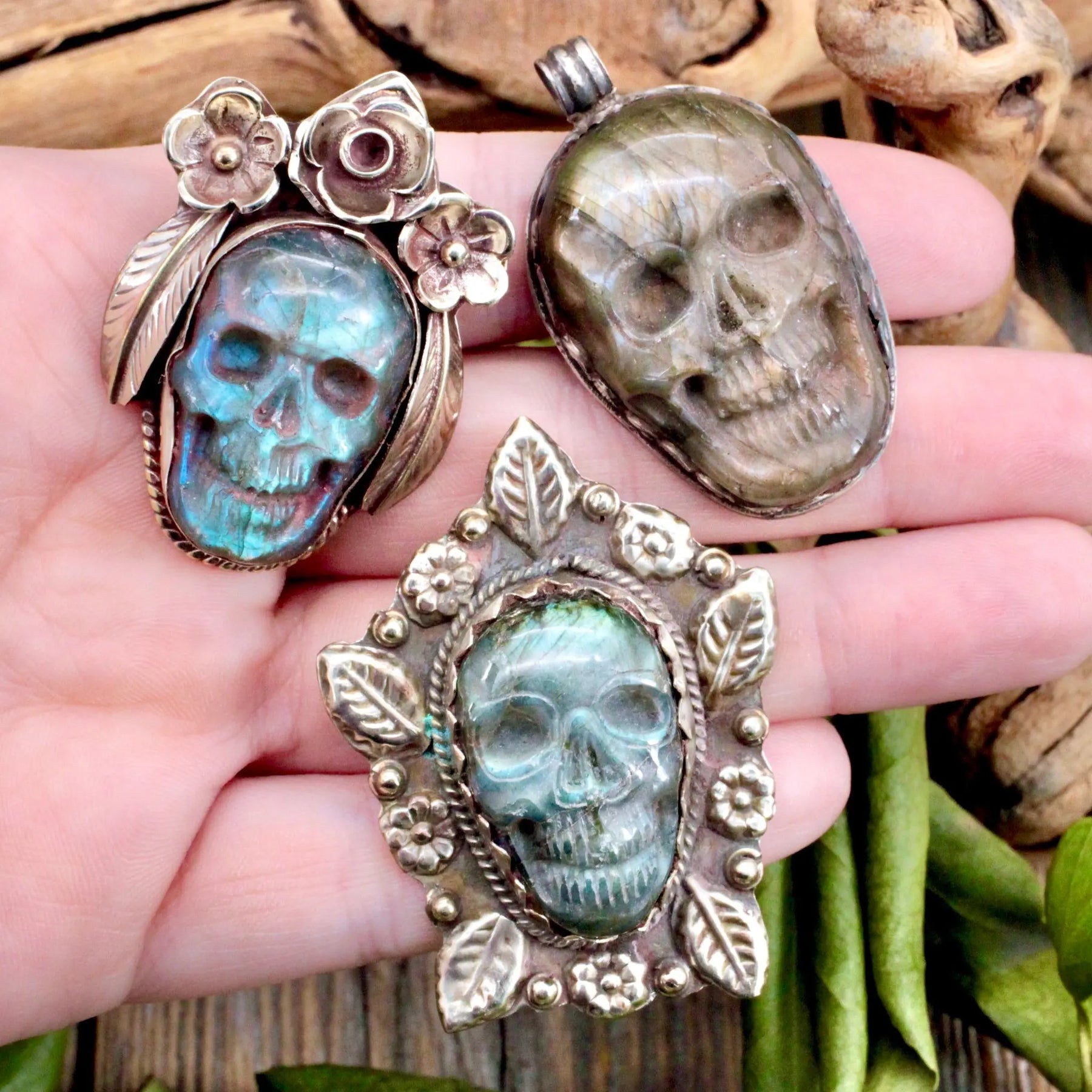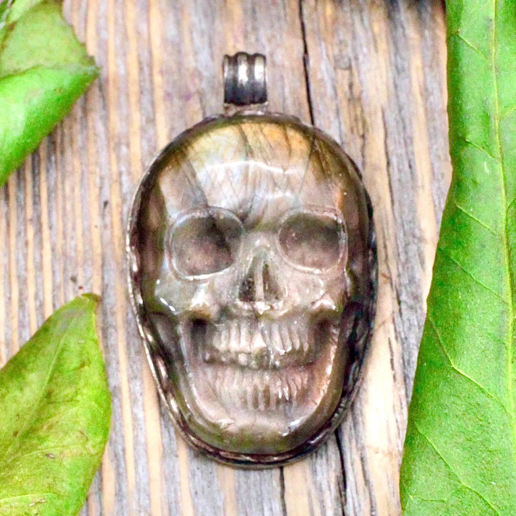 Strengthen your intuition with a Labradorite Skull Pendant. Set in Tibetan Silver, these pendants add style, and psychic protection to any outfit.