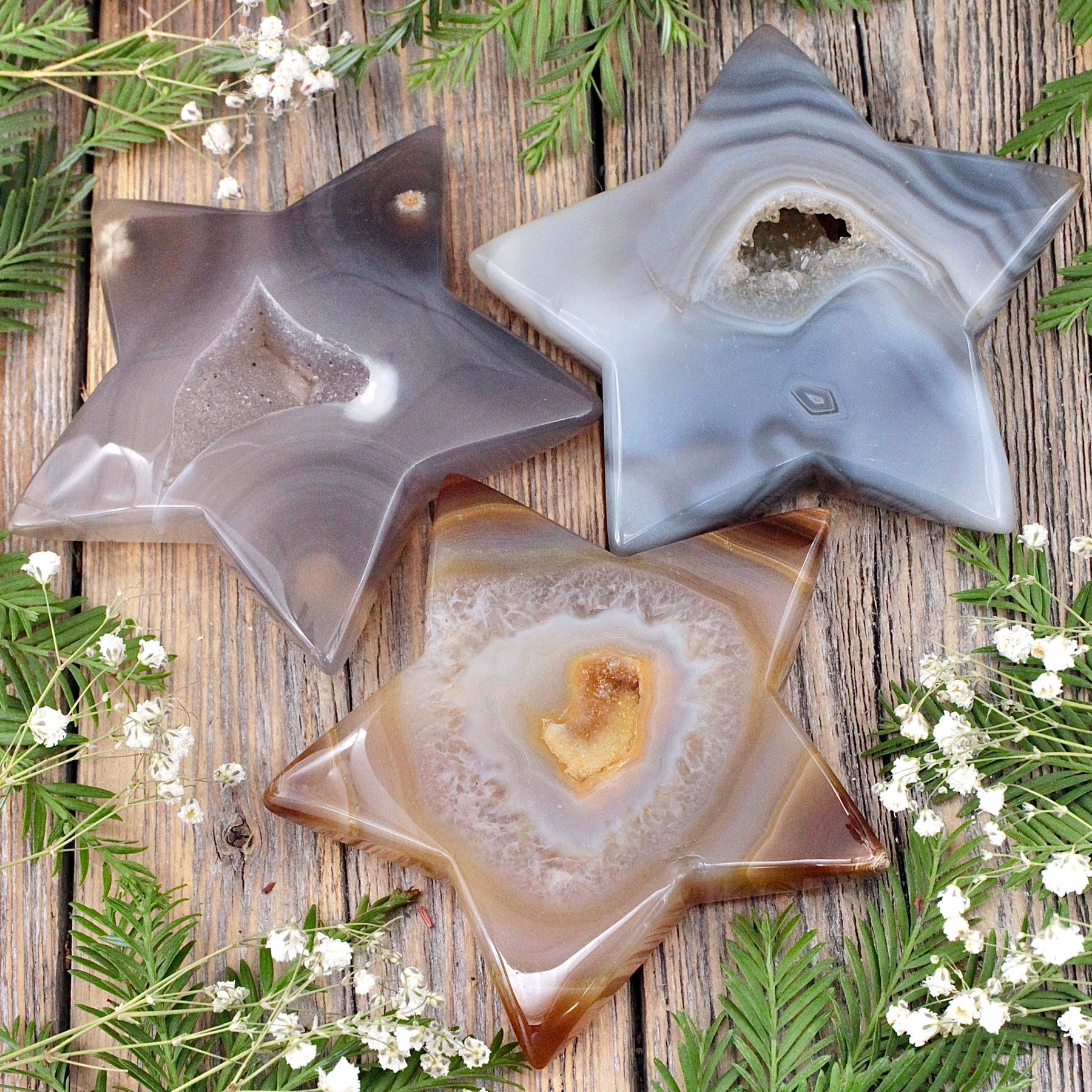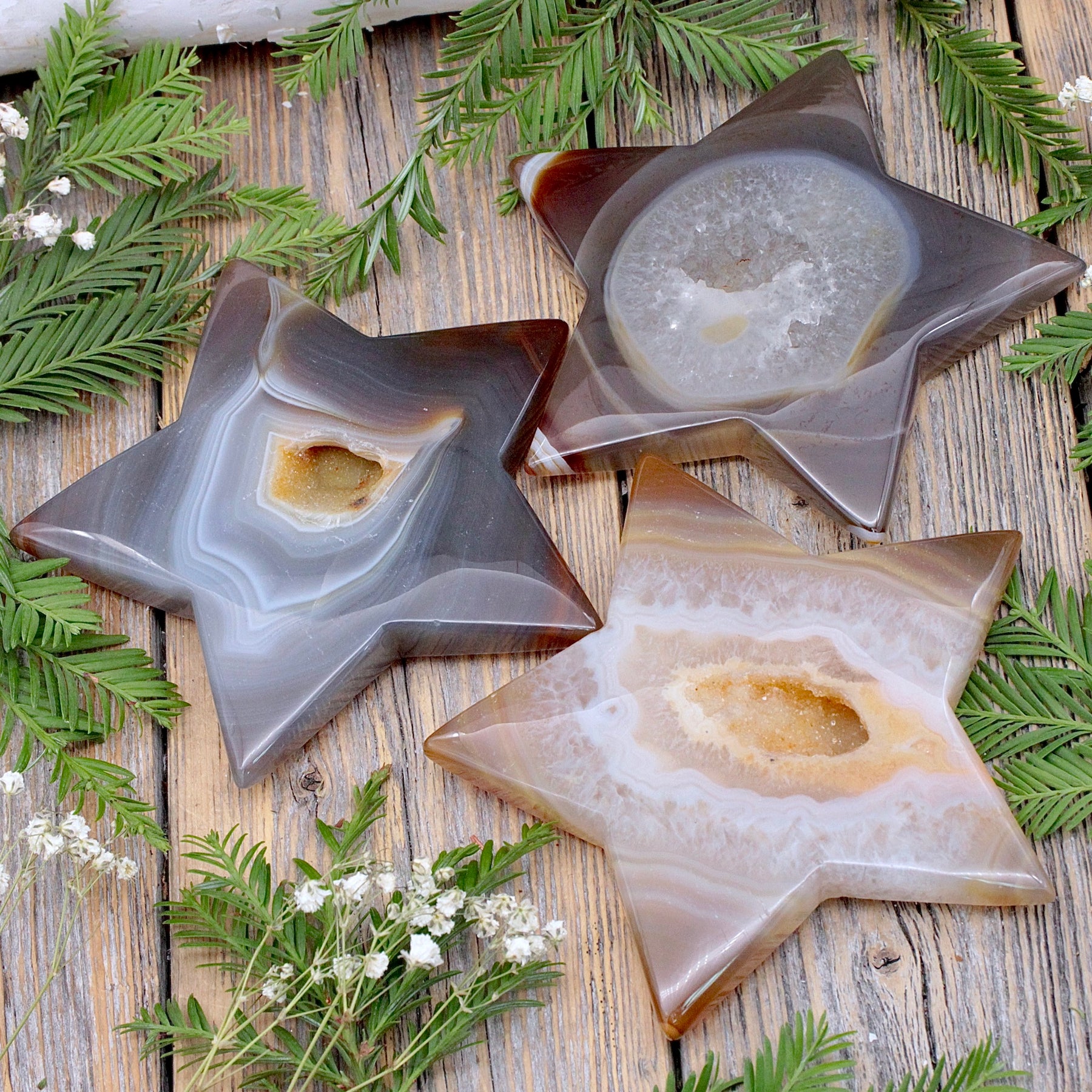 Druzy Agate is a type of Agate in which tiny crystals called druzy have form on the Agate. This stone carries the properties inherent to Agate: deflecting negative energies and empowering balance and self-confidence, leading to a path of personal and spiritual growth. The crystal druzy amplifies the stone's properties, and enhances the agate's properties with quartz vibes: healing, positive energy, and access to higher wisdom. The many druzy points send the beam the energy multi-directionally, to fill a space with the combined energies.