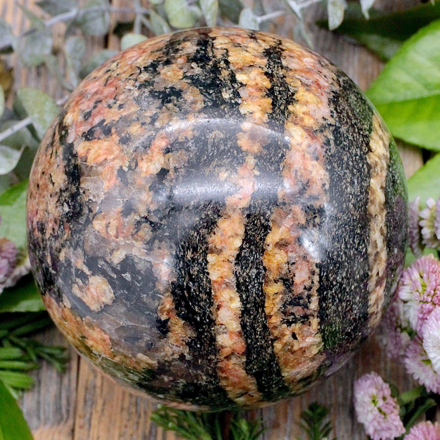 Facilitate a deep grounding with this Cork Marble Sphere. The strong dark lines in this sphere reflect the deep solid energy offered by cork marble. Keep this sphere where it can radiate out the energy to bring harmony and calm to your space.