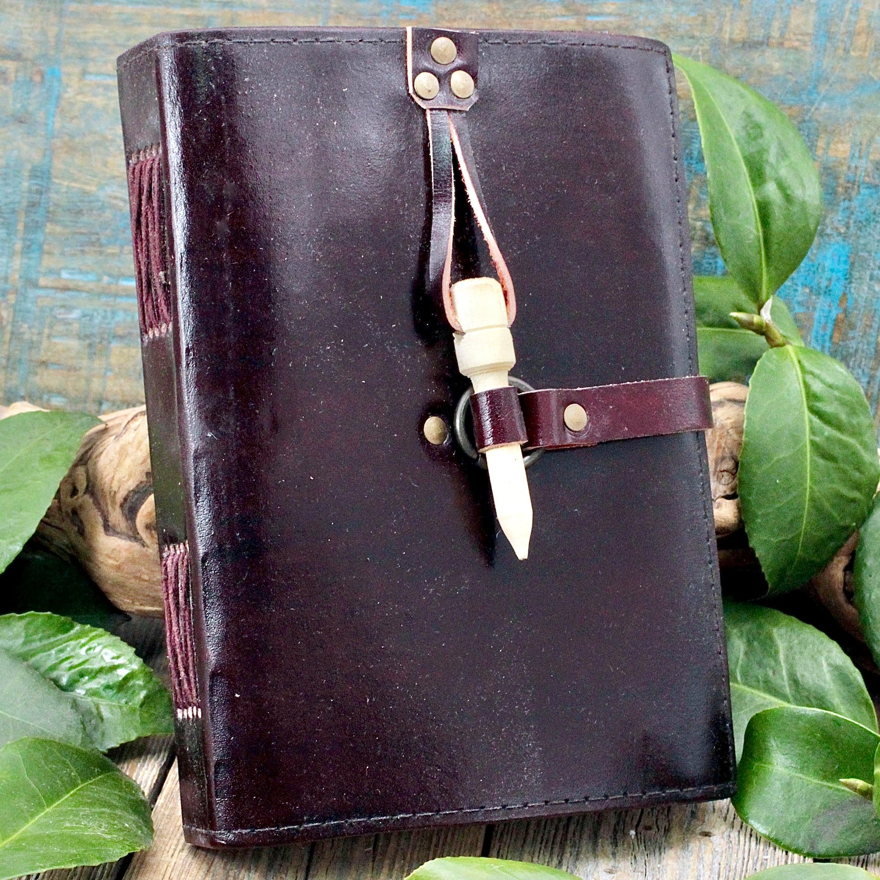 Embrace timeless elegance with this rich Leather Journal with Wooden Peg Closure. Crafted with sophistication, it's the perfect notebook for jotting down your thoughts and dreams.