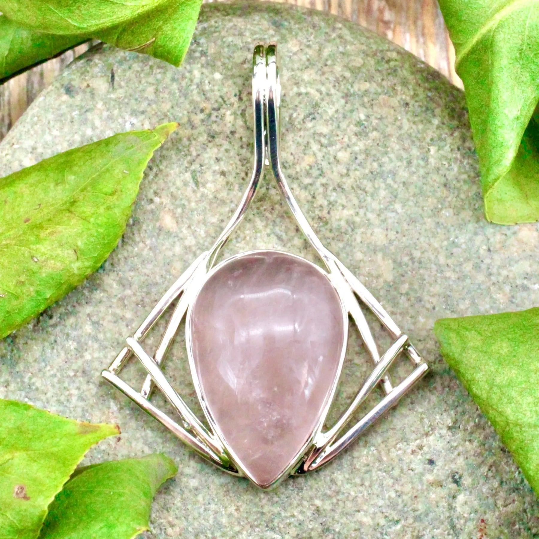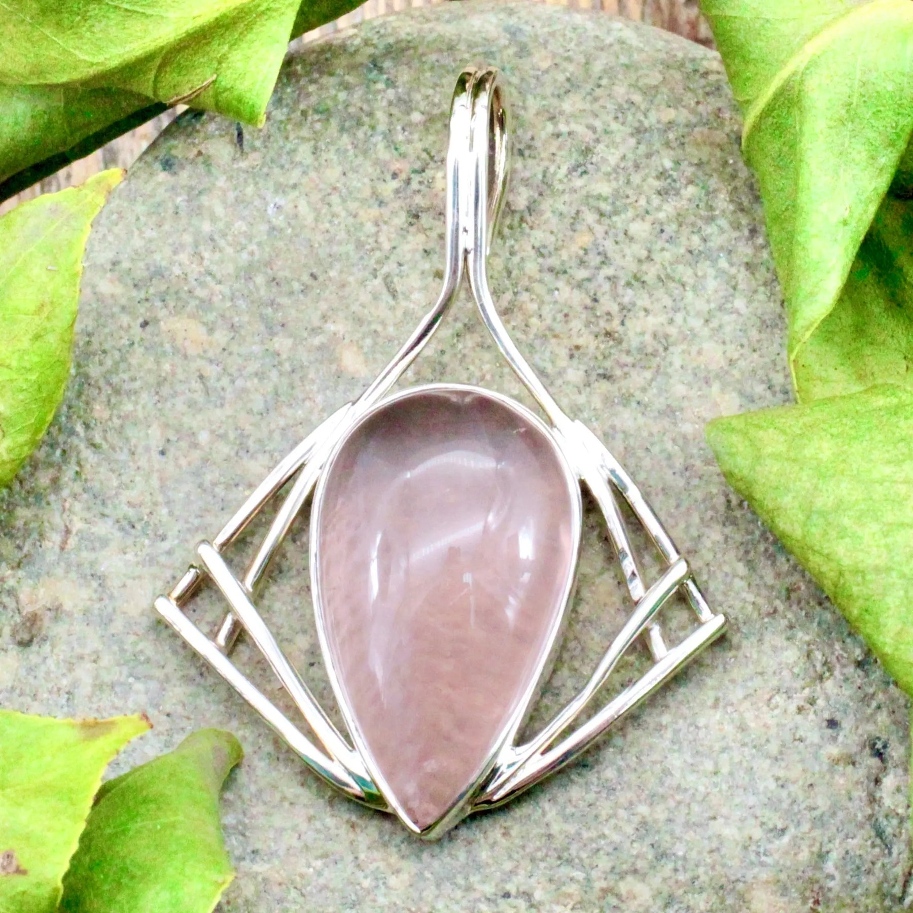 Rose Quartz Pendant in Sterling Silver