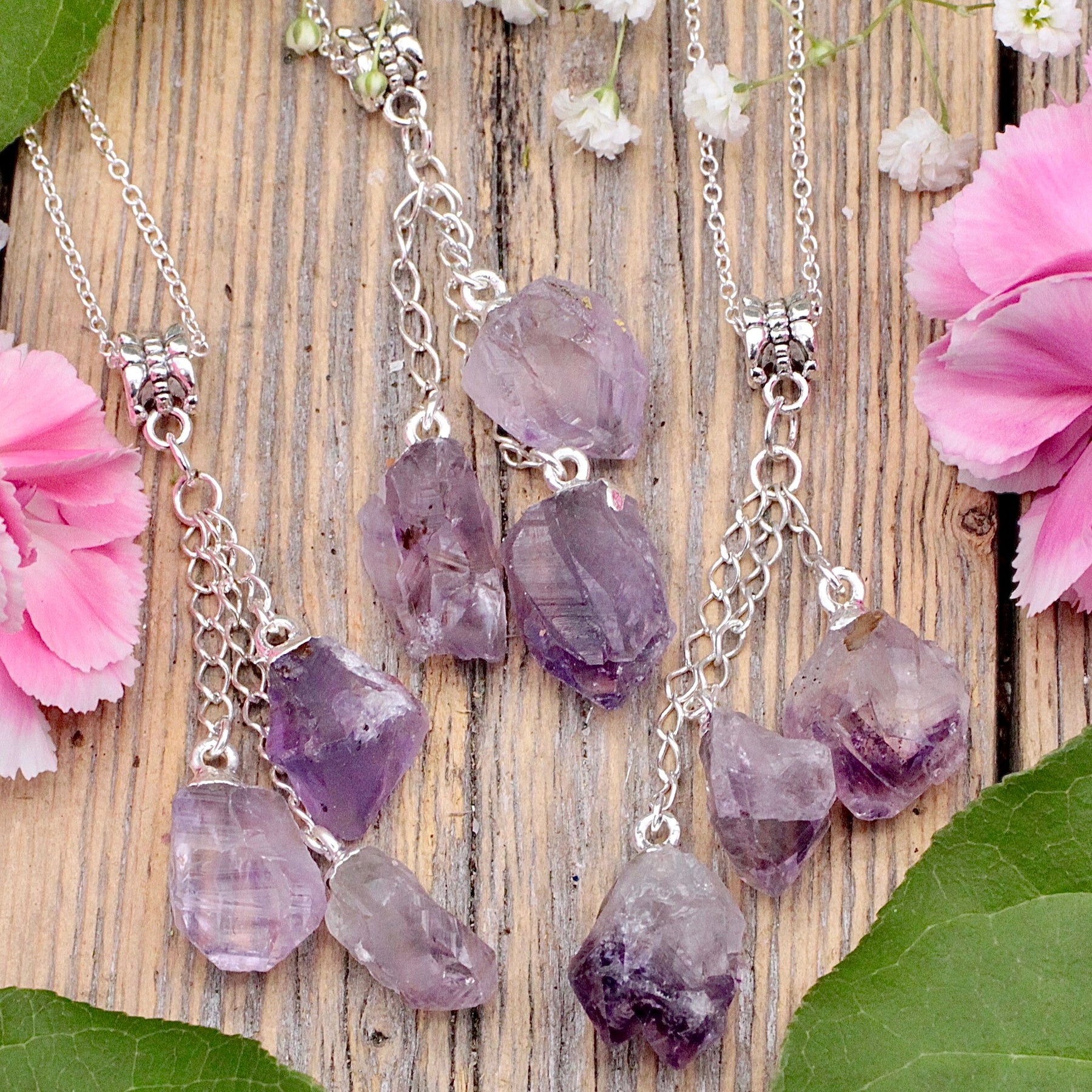 Step into a world of endless possibilities with this Amethyst Triple Drop Pendant. Designed to shift your perspective, it turns negativity into a steady stream of compassion. Experience the mesmerizing and transformative energy it carries.