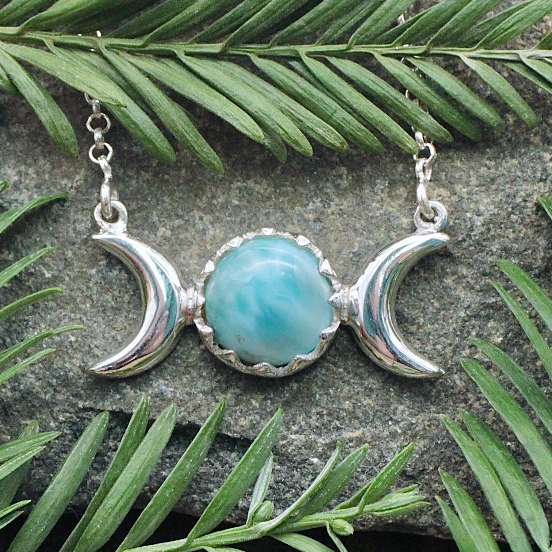 Larimar Triple Moon Necklace