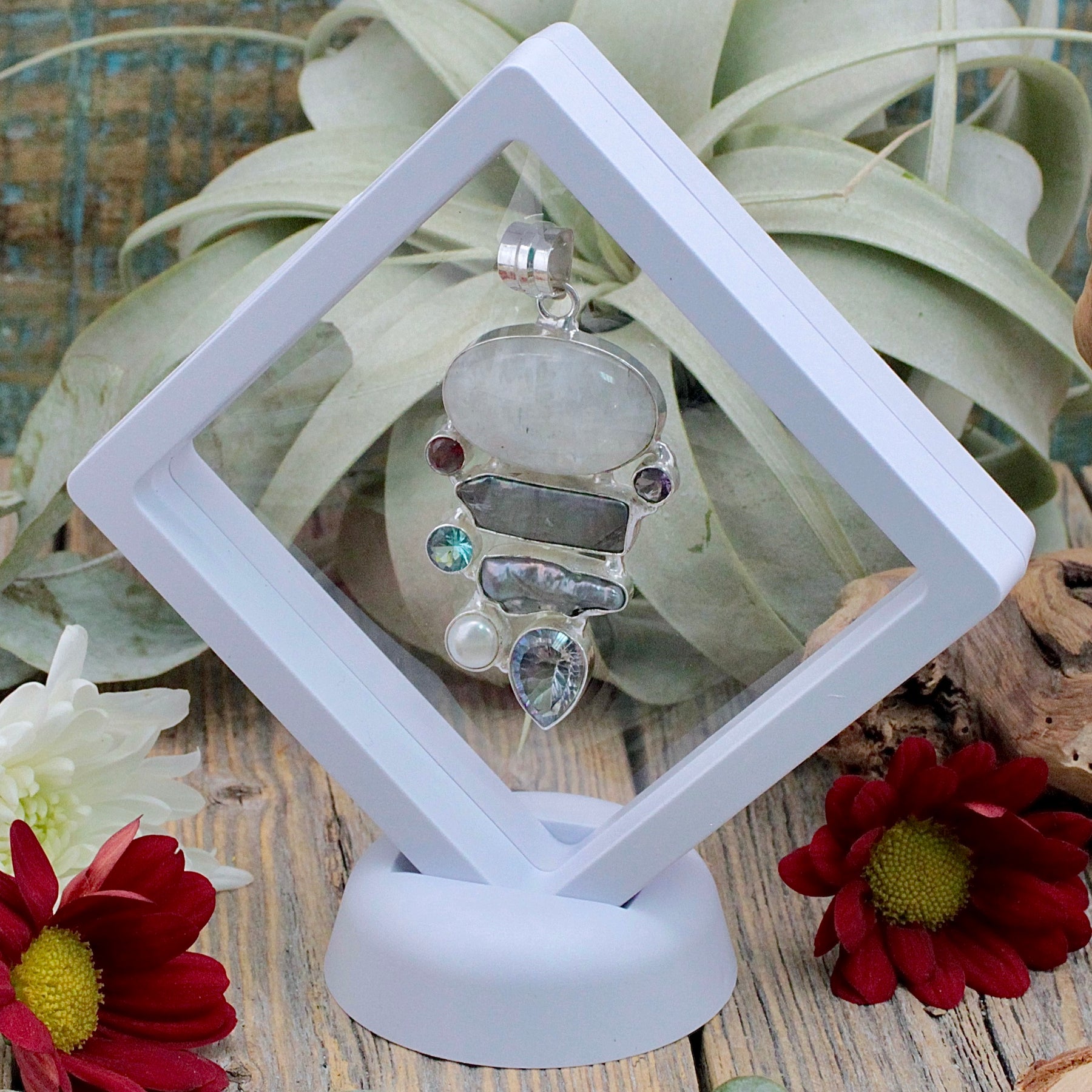 Bring in a whimsical mix of energy with this fabulous Multi-Stone Pendant in Frame.