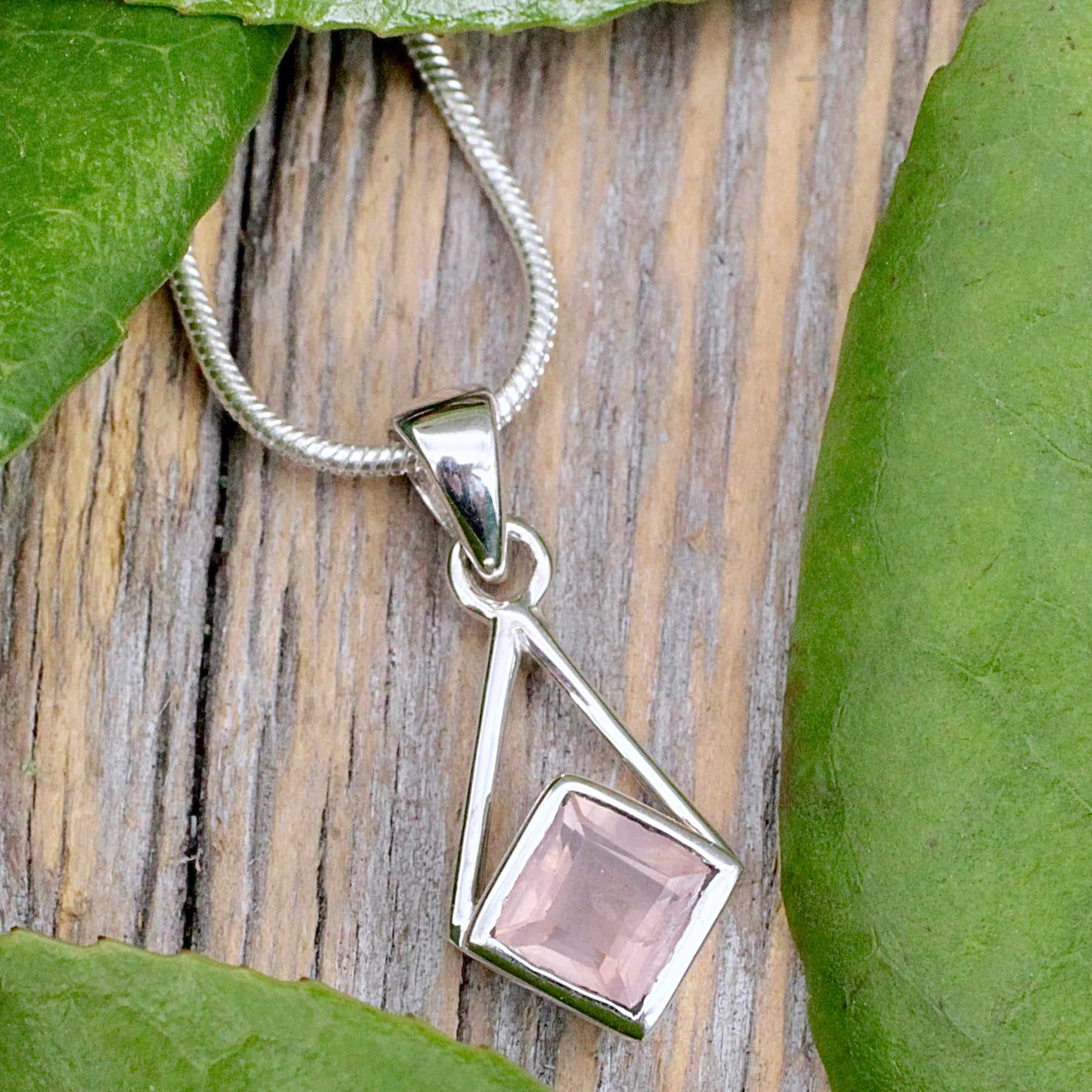 Rose Quartz Diamond-Shaped Pendant