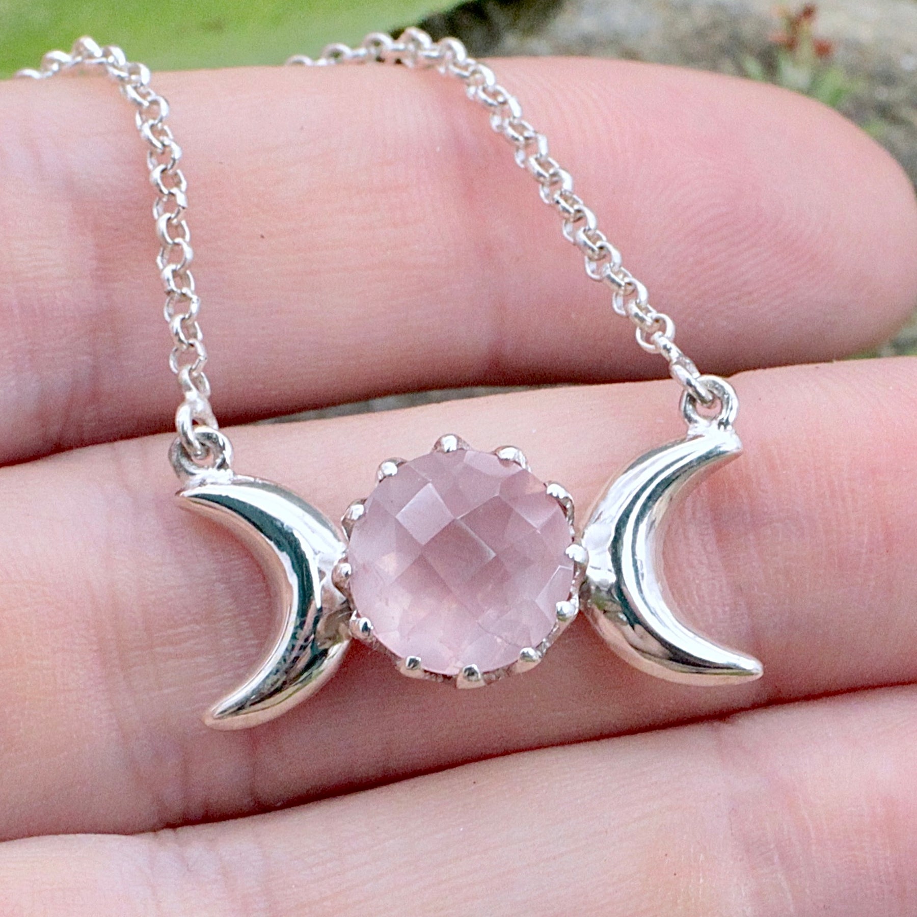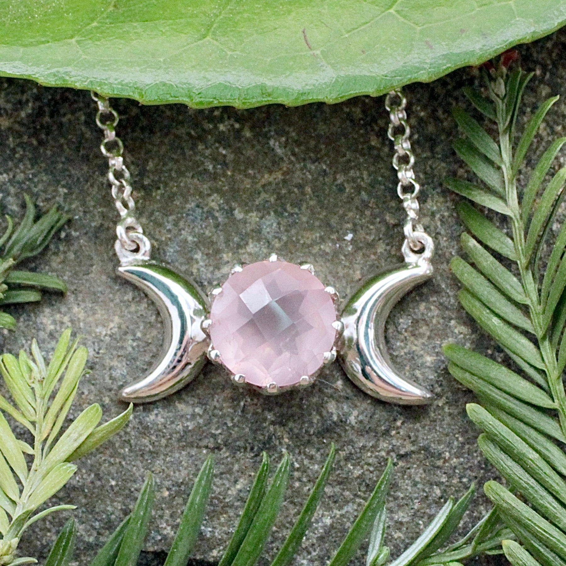 Embrace the enchanting power of love with this Rose Quartz Triple Moon Necklace. Emitting a gentle and affectionate vibration, Rose Quartz infuses any space with a delightful aura. Wear this necklace to experience the tender embrace of love wherever you go, allowing its warm energy to surround and uplift you.