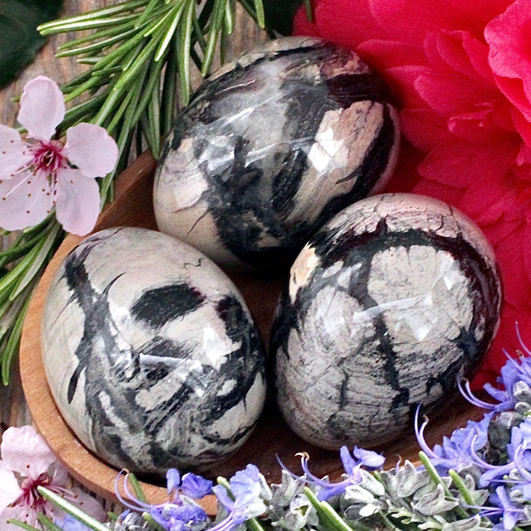 Harmonize energy with this Silver Leaf Jasper Egg. Embrace balance, grounding, and strength. Elevate your spiritual journey with grace.