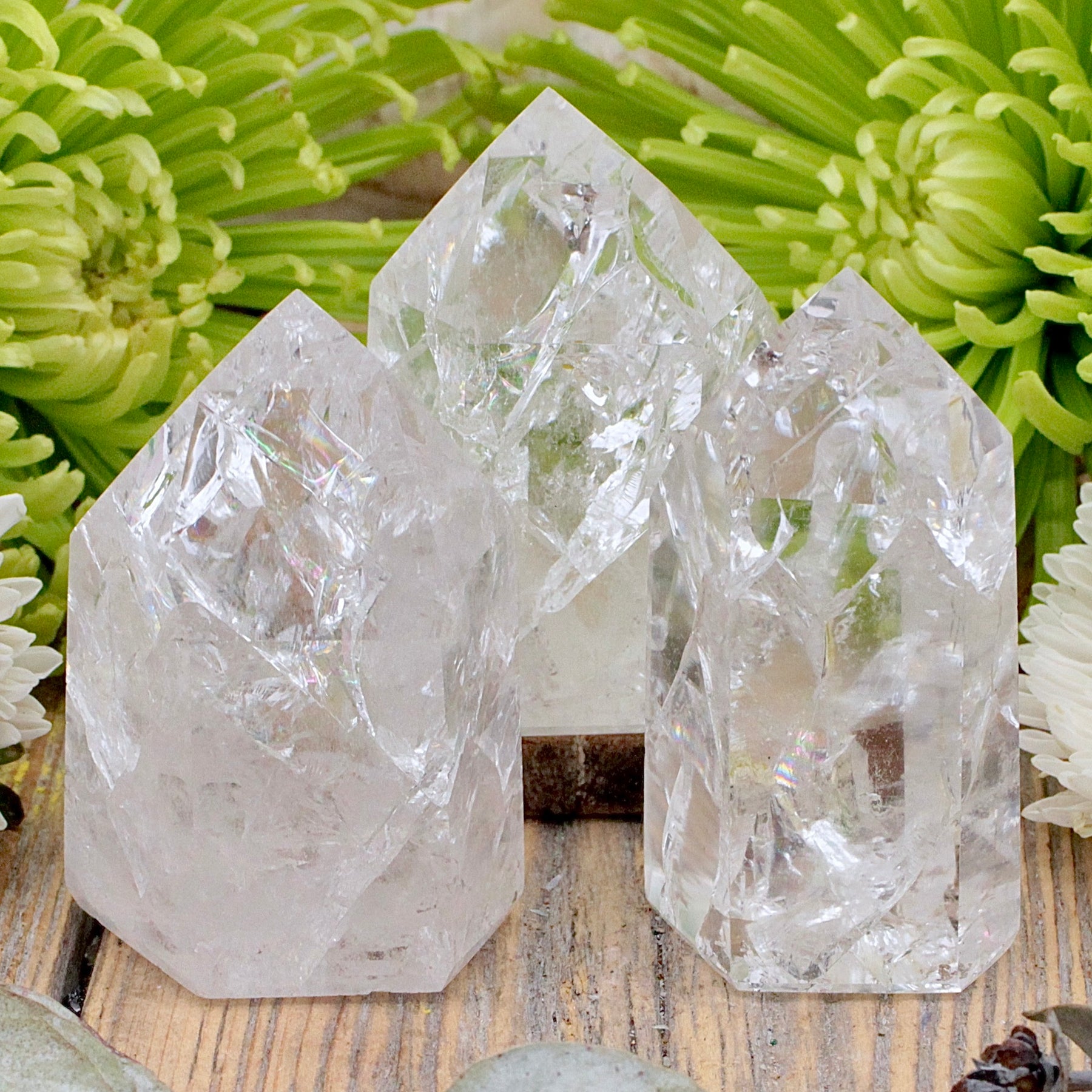 Quartz is a powerful healing stone and energy amplifier. It energizes all levels of consciousness and clears negative energies. The stone is excellent for meditation and enhances communication with the higher self and spirit guides. A reflector of every color of the rainbow, Quartz stimulates, clears and balances all your chakras.