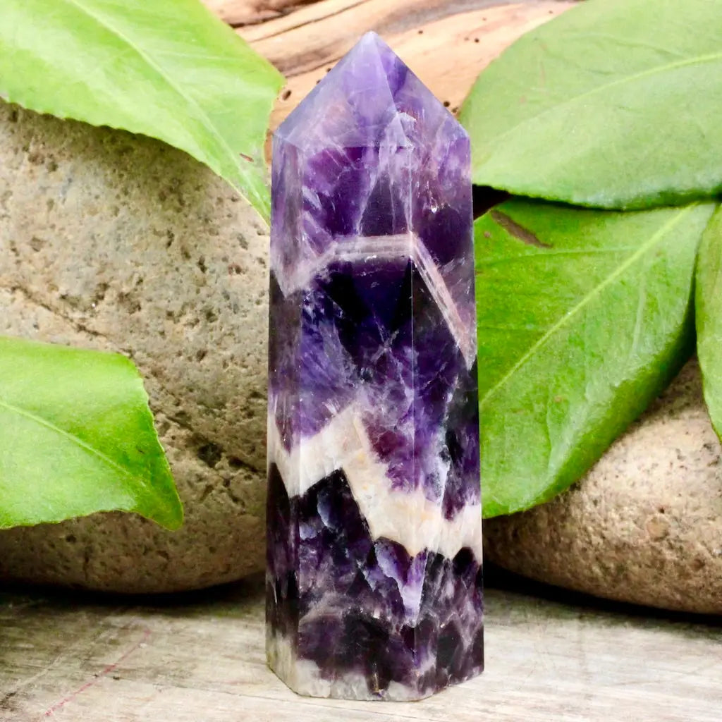 This adorable Chevron Amethyst Tower is great for those who are on the go because you can put the power of Chevron Amethyst in your pocket or in a bag. And Chevron Amethyst is certainly a powerhouse. Connecting us to the Divine and maintaining protection and peace in our lives, Chevron Amethyst is a wonderful stone for anyone to keep on their person.