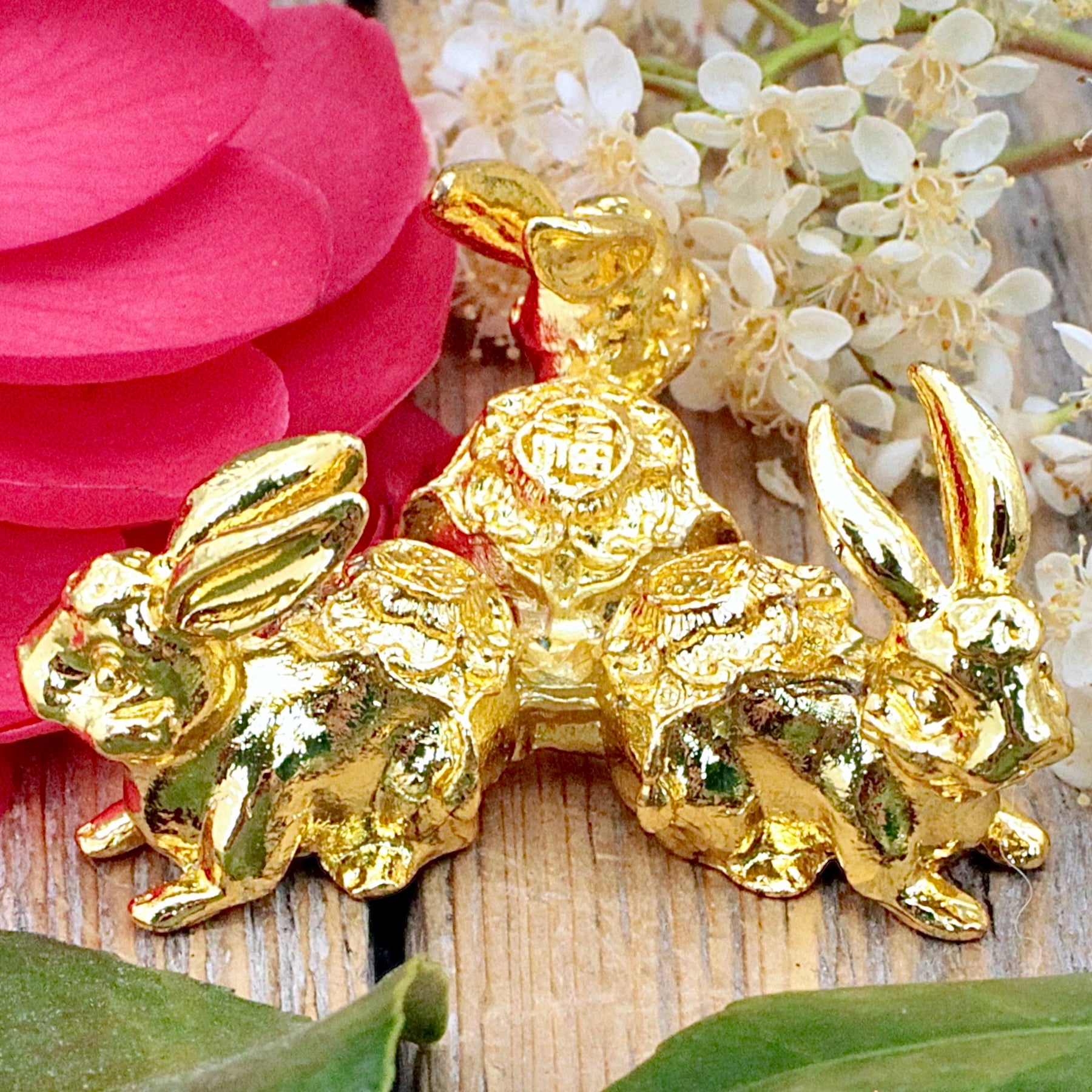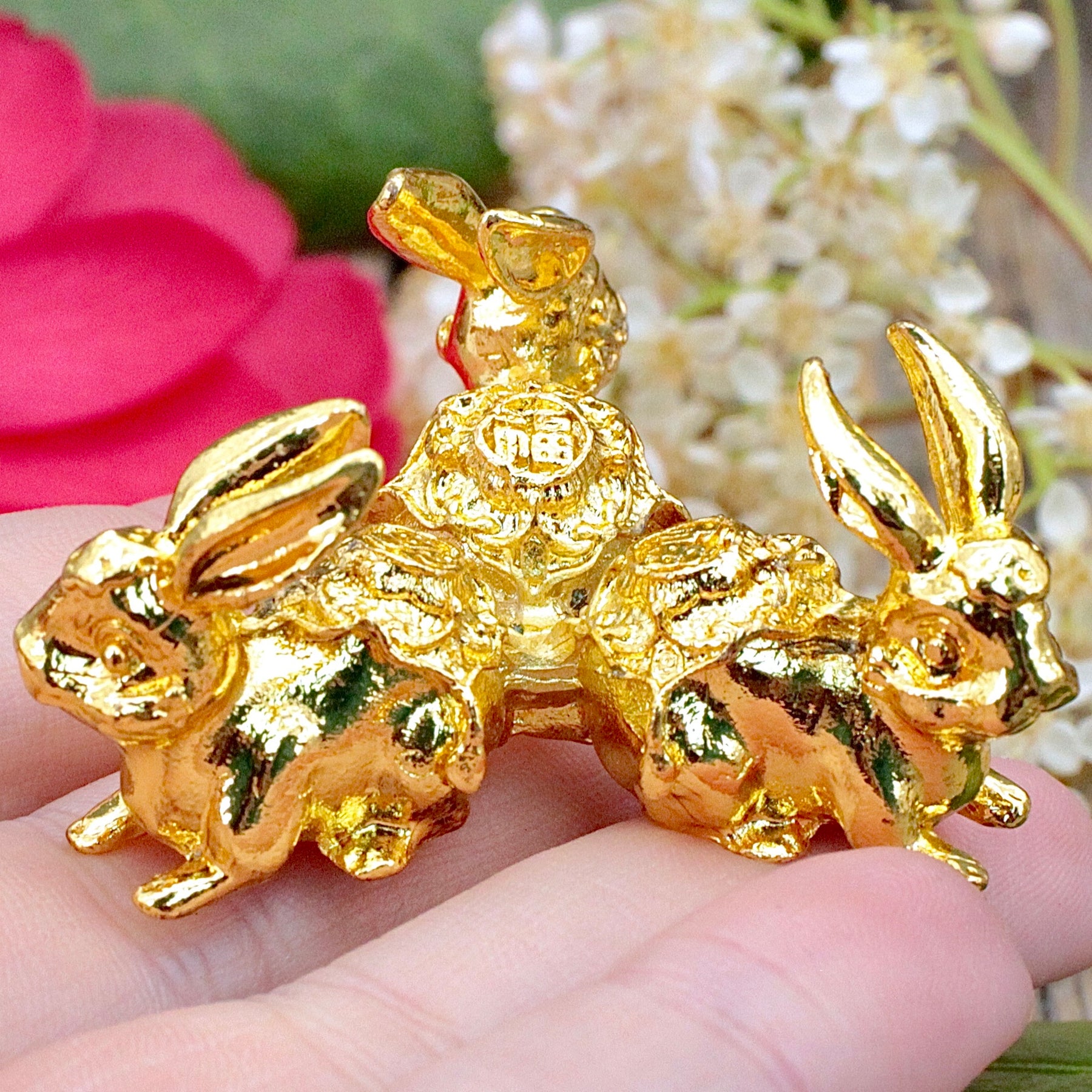 Golden Triple Bunny Sphere Stand