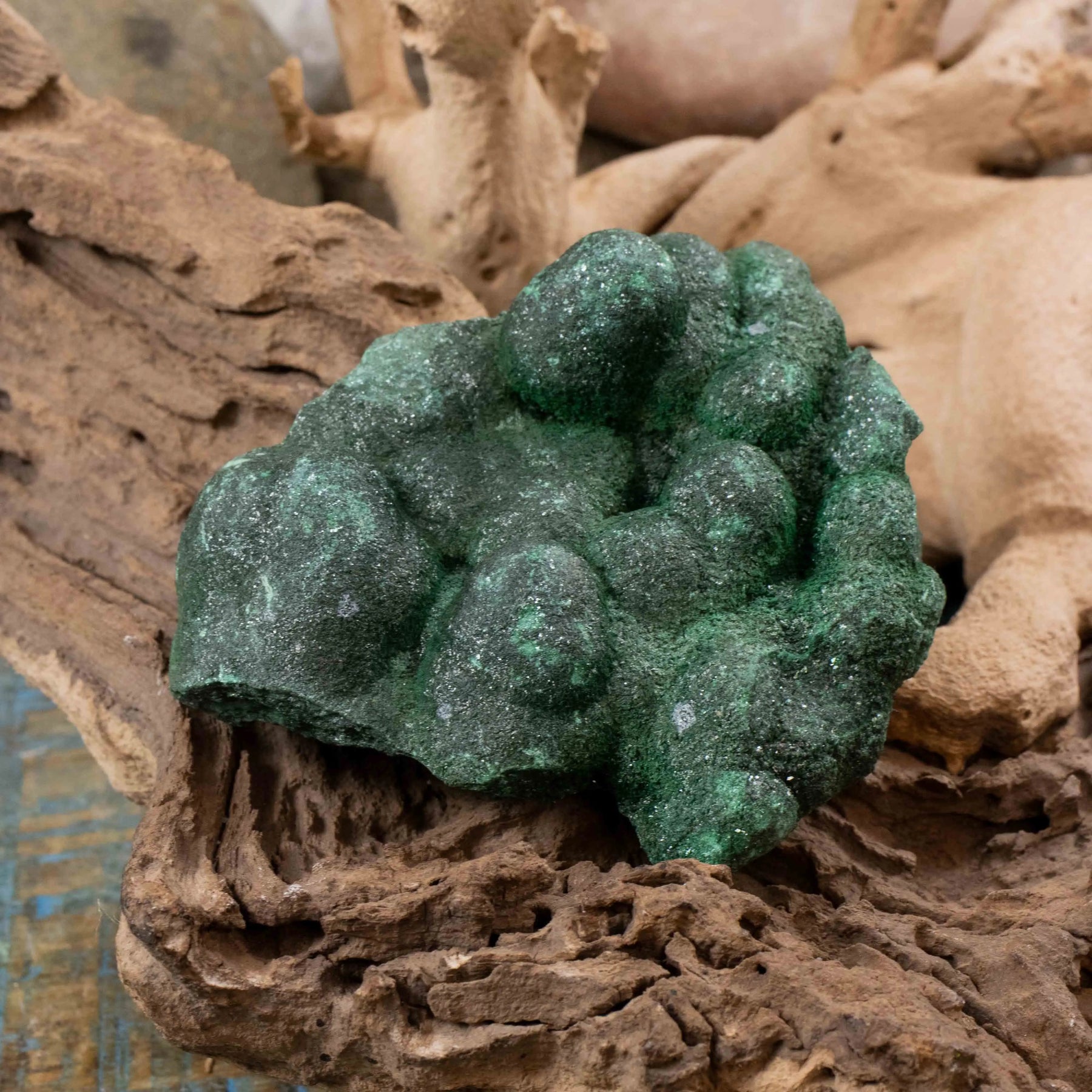 I have several pieces of Malachite. Each is very different in it's presentaion The color goes from a vibrant green in the polished stones and slabs, to the rich velvety darker greens of the boitriodal, and other raw forms. A healer, a confidant, or a beautiful piece of art... Malachite will always be with you.