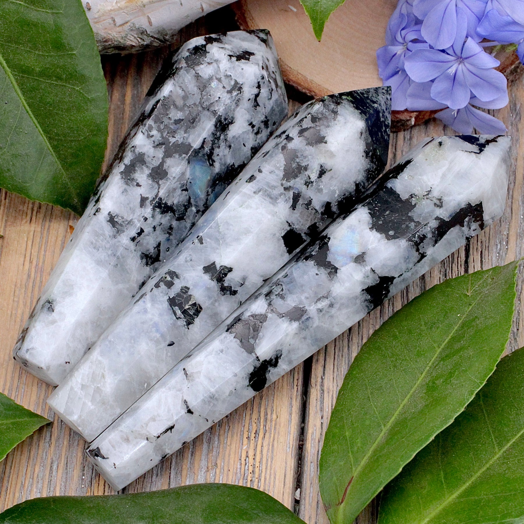 Rainbow Moonstone works to align and activate our entire chakra system, facilitating an abundant flow of life force. It offers joy and optimism. It is an excellent companion for introspection and navigating life's challenges. Like all Moonstone, it is a "stone of new beginnings." With a deeply feminine energy, it opens the mind to serendipity and synchronicity. Connected to the moon and the natural cycles of change, it helps release old patterns and offers deep emotional healing.