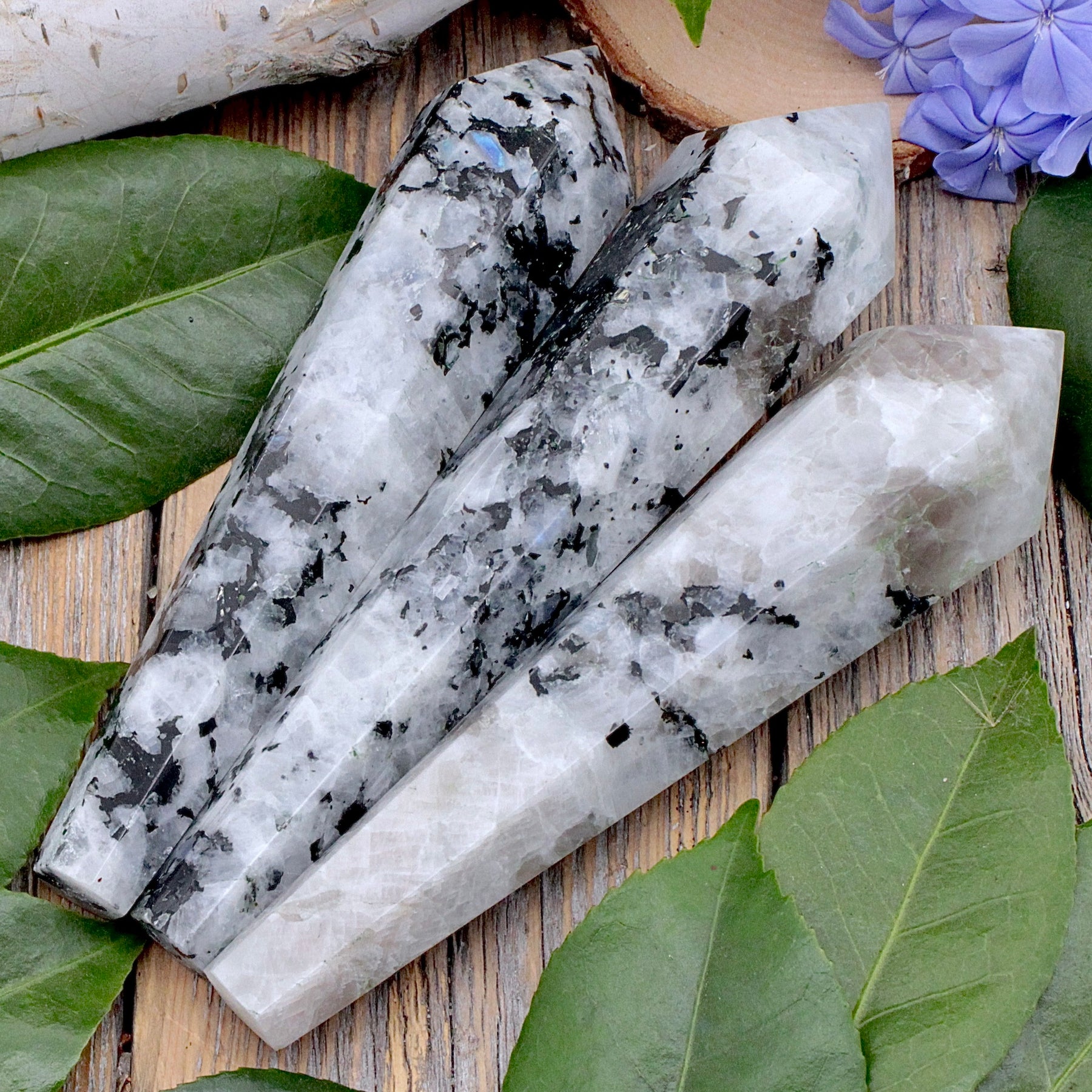 Let go of old patterns with the help of this Rainbow Moonstone Wand. The beautiful flash that can be found in the stone reminds us to look carefully within ourselves to calmly move into our new futures.