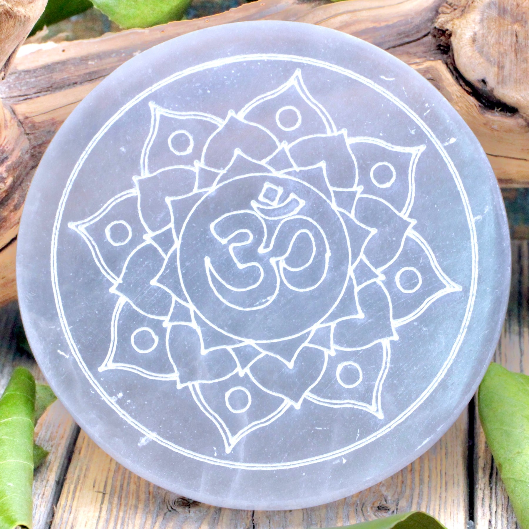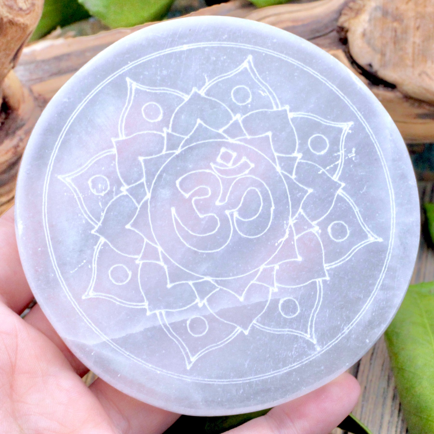 Immerse yourself in tranquility all day long with this elegant Selenite Om Charging Plate. This enchanting gem acts as a perfect channel to capture the profound energy of Selenite, enabling you to fully experience its remarkable essence.