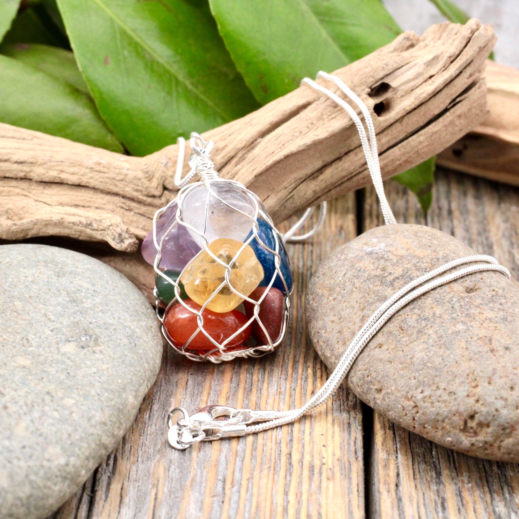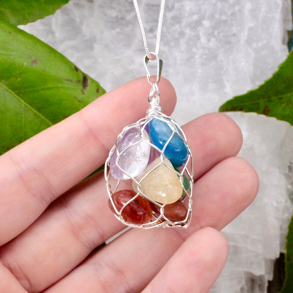 This Mixed Gem Wrap Pendant brings you a little bit of everything to help balance your chakras. Unbalanced chakras can lead to troubles expressing yourself and achieving your desires and finding peace and purpose in life. We recommend using this piece as a part of your chakra work to reinstate or maintain balance.