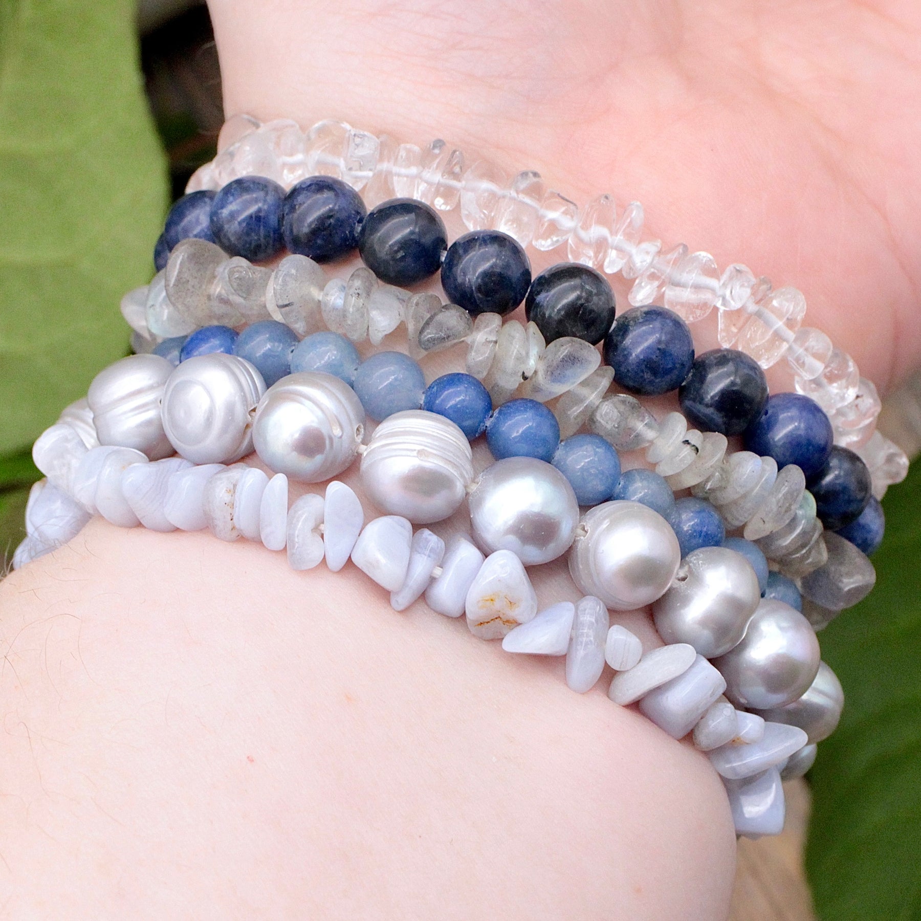 Embrace effortless style with this Blue Jean Vibes Bracelet Set. Like your favorite denim, its soothing blues and luminous accents bring calm, clarity, and confidence. A blend of serene and grounding energy keeps you balanced, inspired, and ready for whatever comes your way. Relax, shine, and go with the flow.
