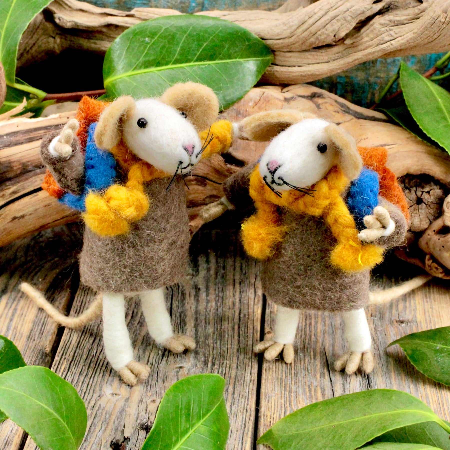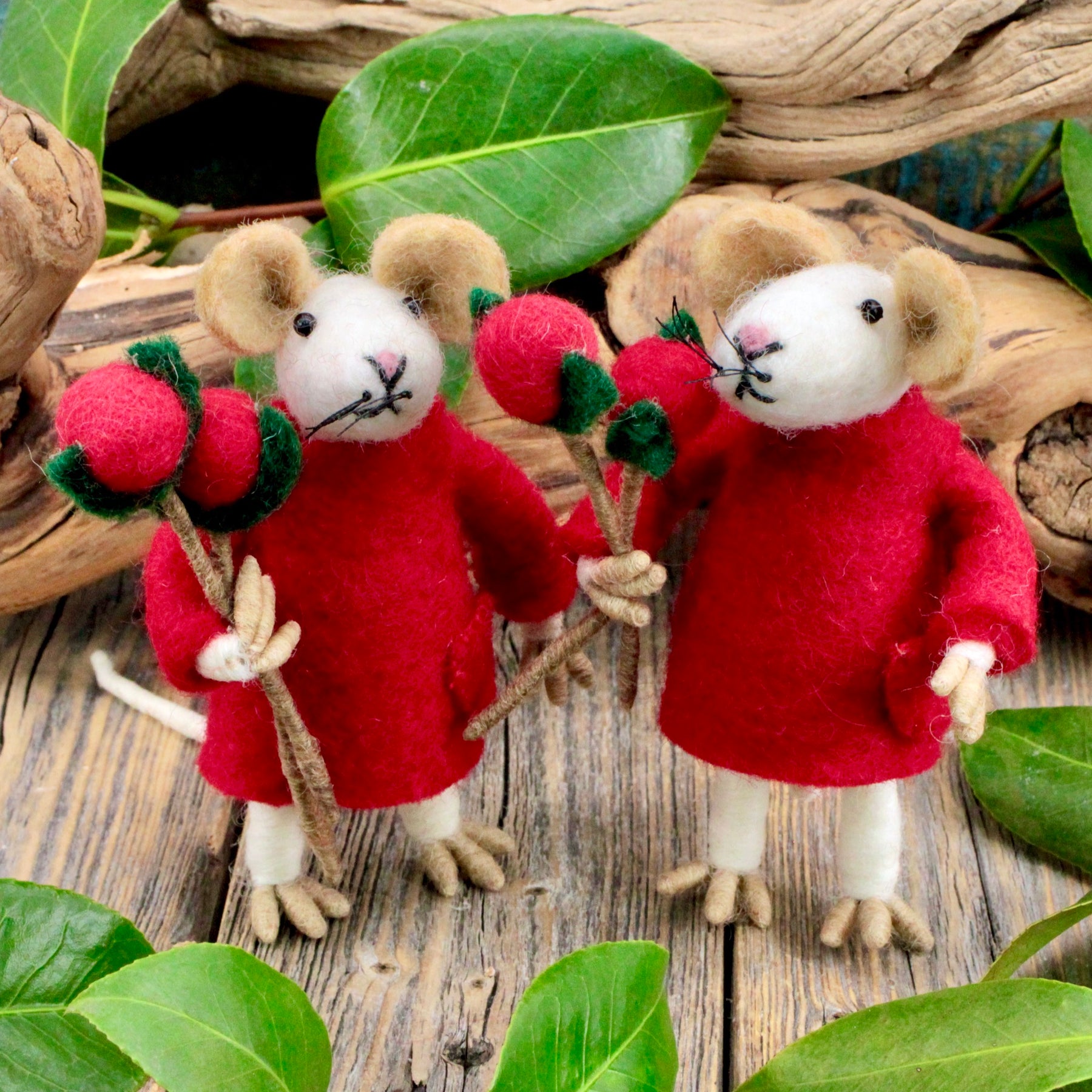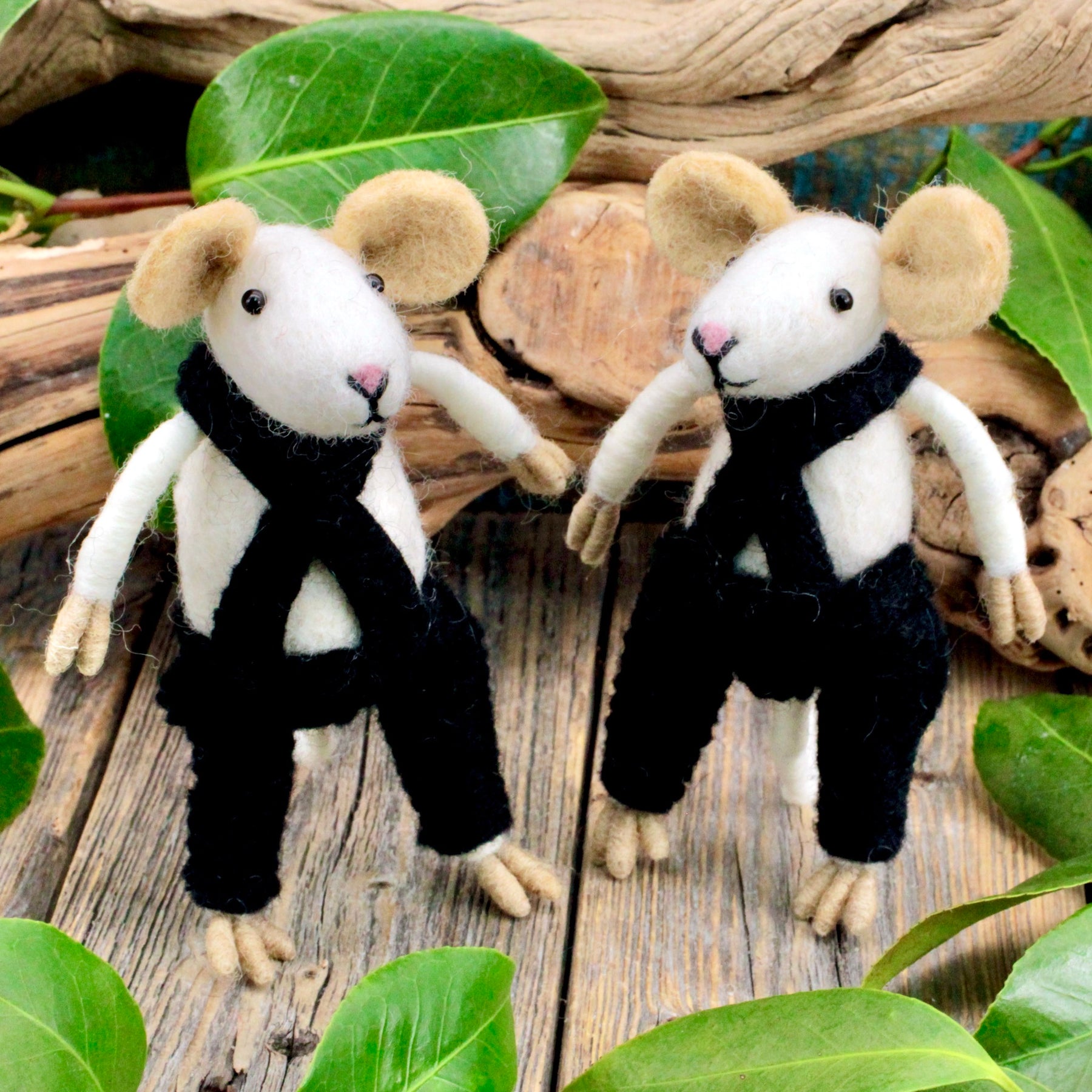 Invite a little whimsy into your day with one of these precious felt mice. Each one has an adorable outfit and can add a fun atmosphere to your space. Makes a great gift!