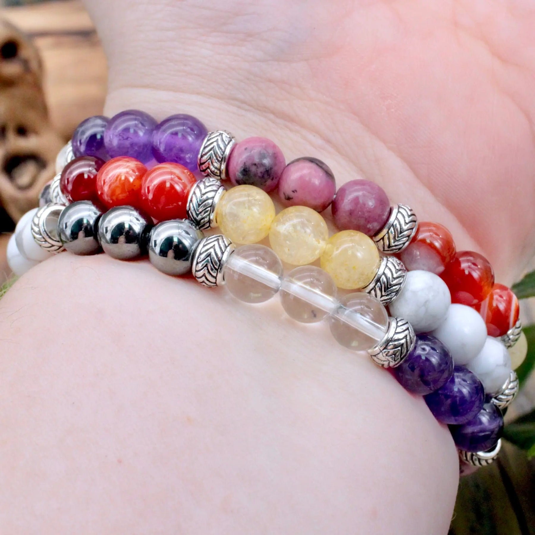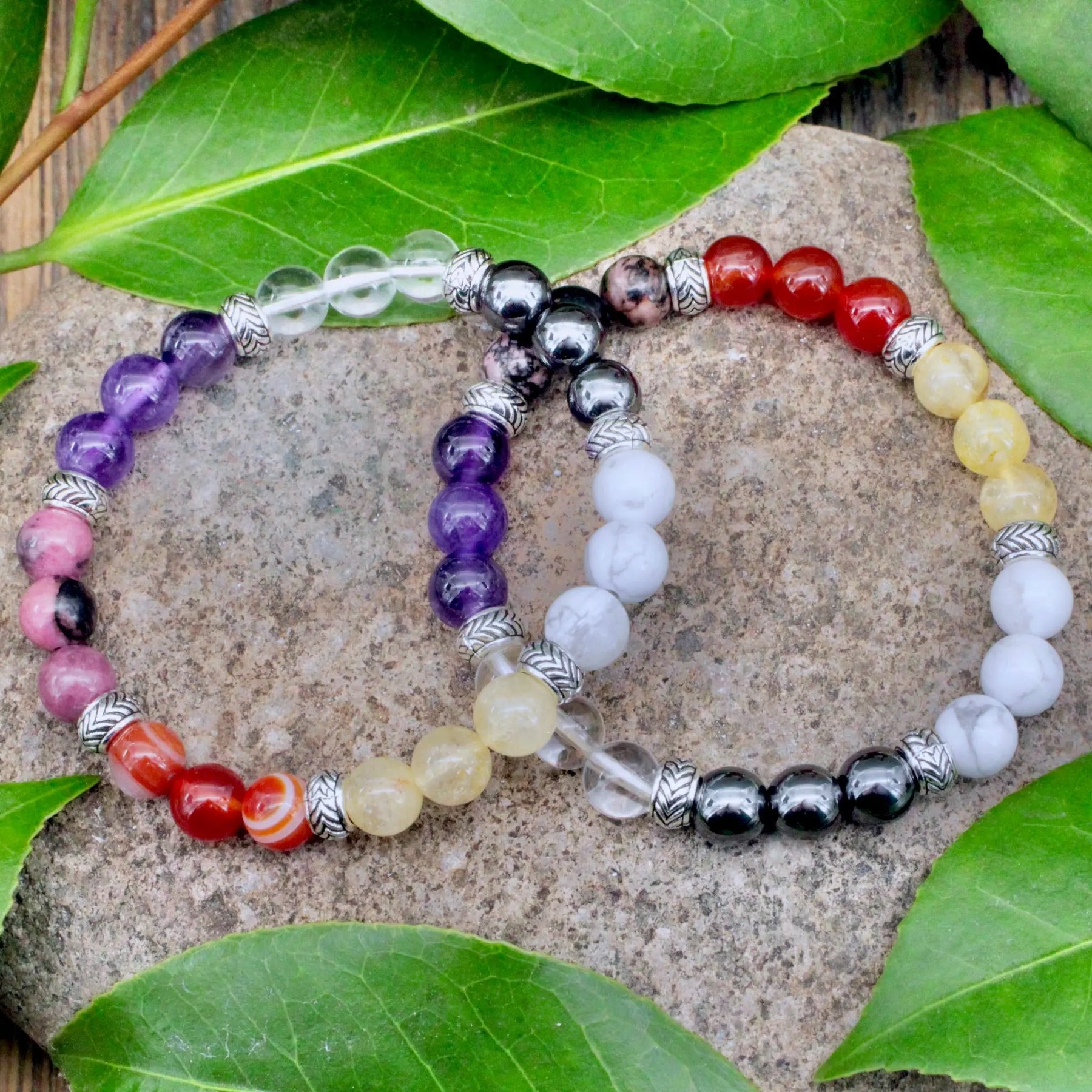 Discover holistic support during this time of change with this transformative Menopause Support Intention Bracelet, featuring Hematite, Rhodonite, Howlite, Clear Quartz, Citrine, Amethyst and Carnelian. Embrace this empowering blend and navigate your menopause journey with grace.