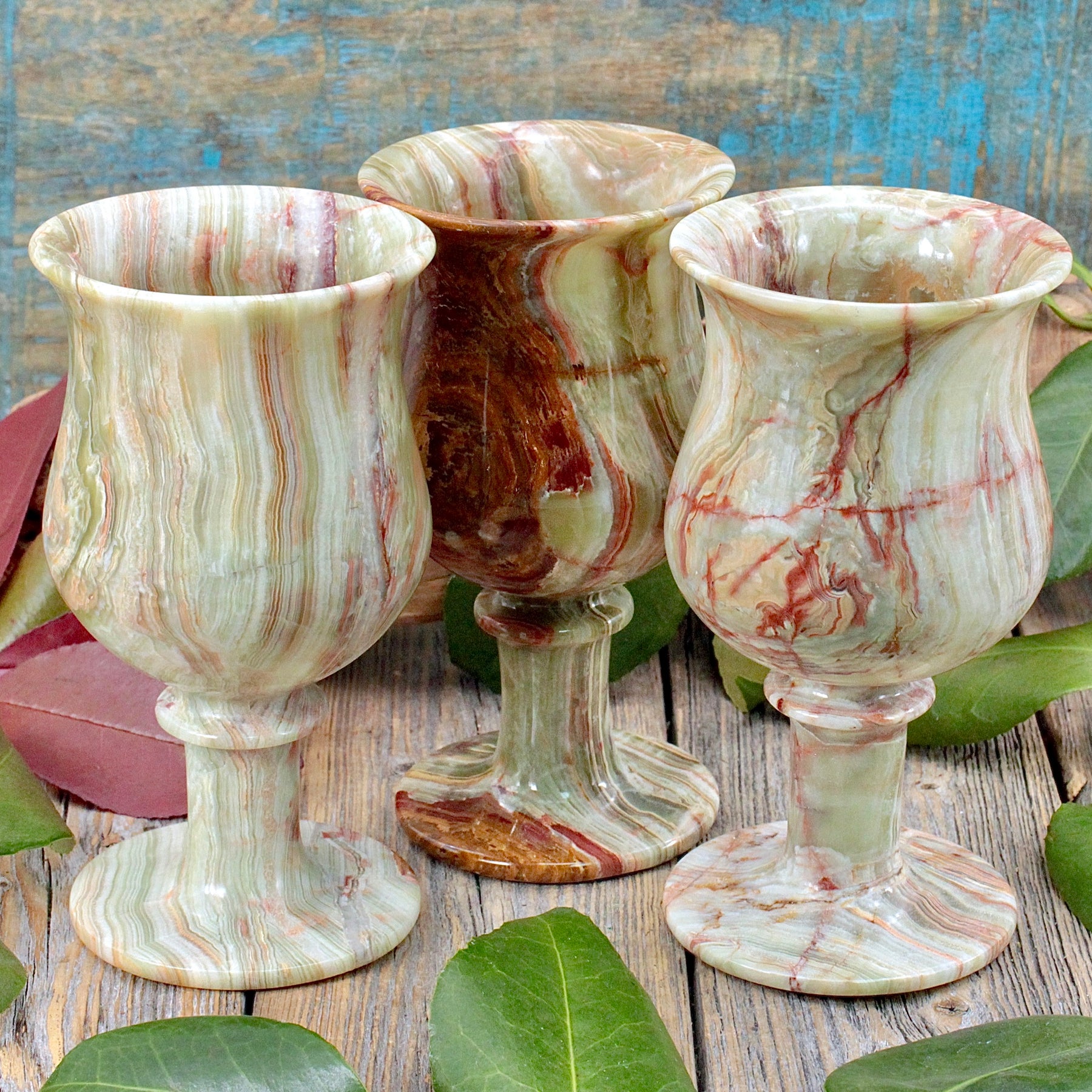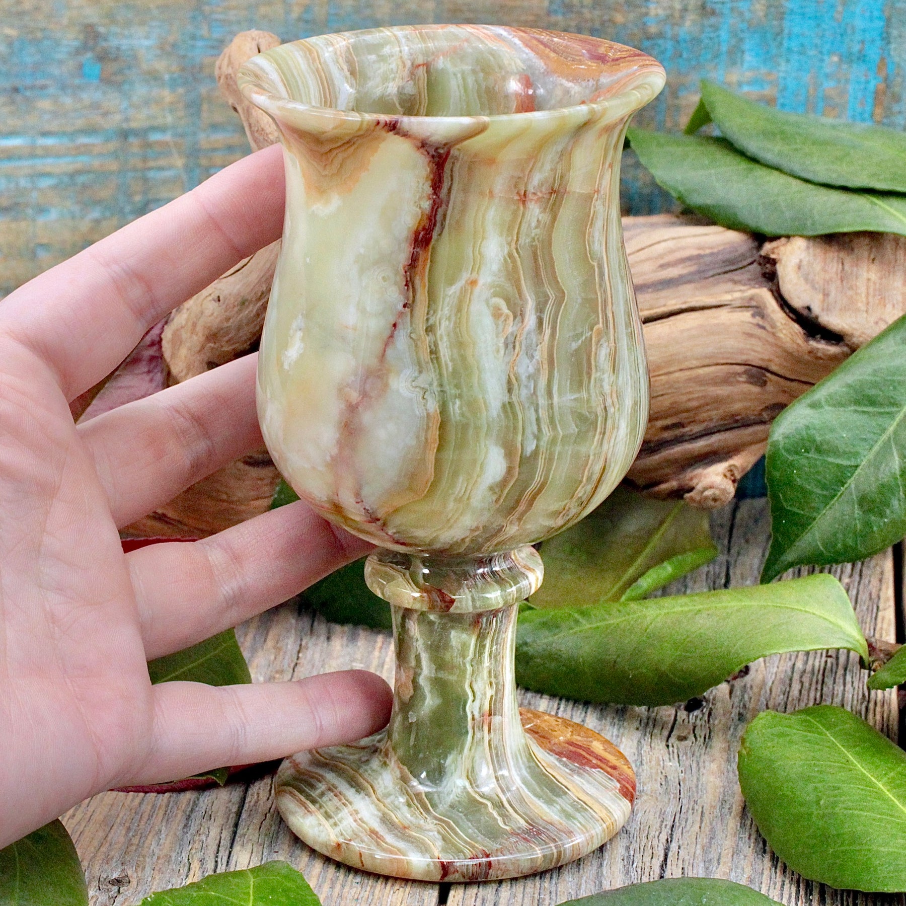 Experience serenity with this Green Banded Calcite Goblet. Crafted for elegance and energy, it transforms sips into tranquil moments.